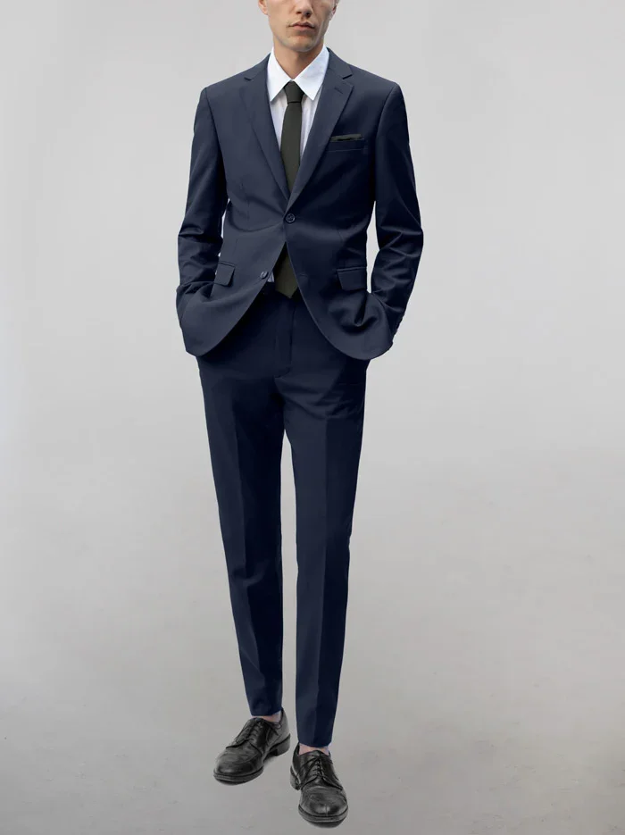 SIZE Available in modern fit or slim fit FABRIC Tetron/Rayon/Spandex Lined in 100% Viscose JACKET Notched lapels Custom flap pockets & breast pocket Lightly-padded shoulders Non-functional buttons on sleeves Double back vent PANTS Flat front Unhemmed Non-pleated front design Zip fly with button closures Belt loops 36" inseam length Slightly tapered toward the bottom