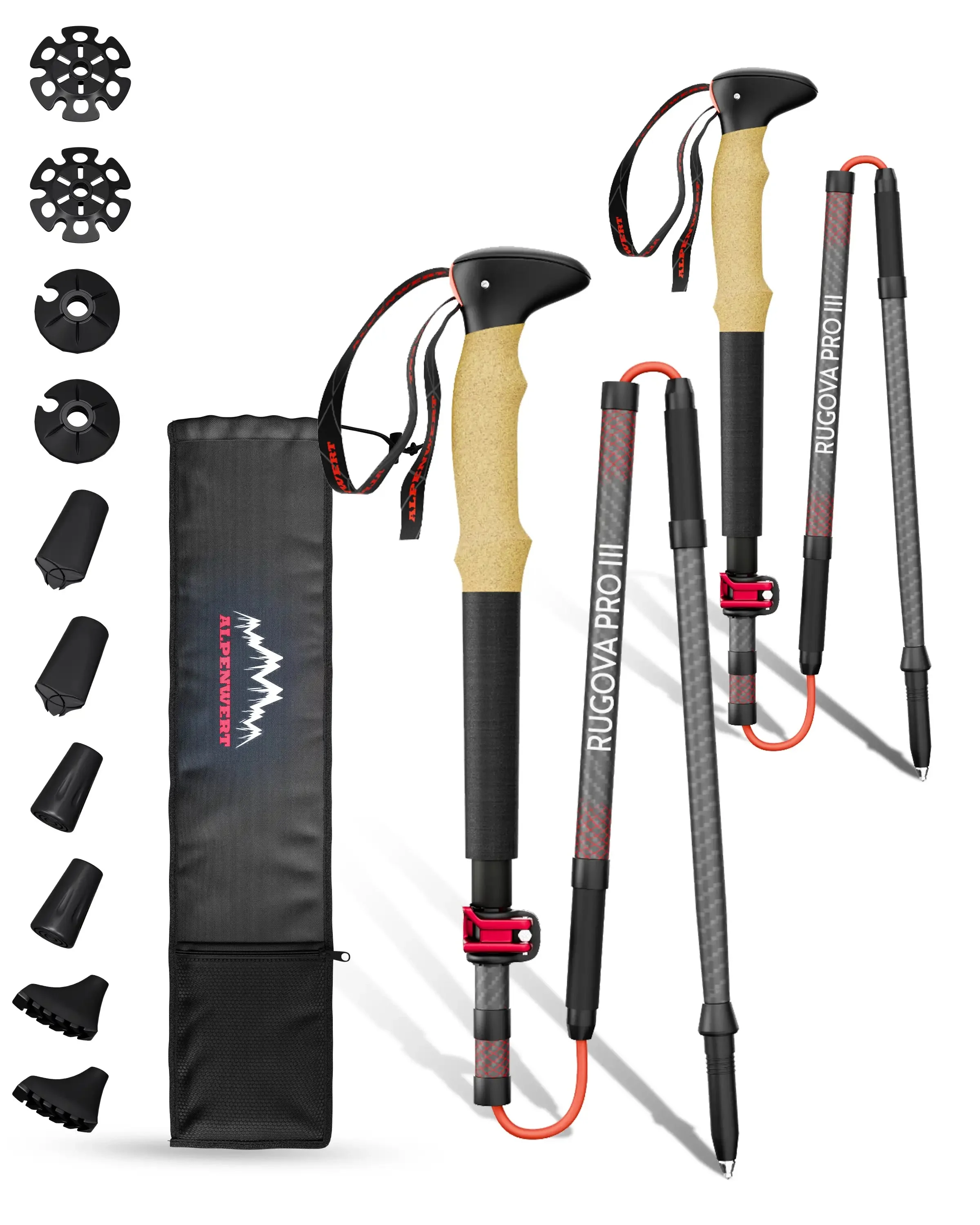 Faltbare Wanderstöcke von Alpenwert – kompakt, leicht & vielseitig einsetzbar Unsere faltbaren Wanderstöcke sind die perfekte Lösung für alle, die auf langen Touren möglichst wenig Gewicht tragen und dennoch nicht auf Stabilität verzichten wollen. Ob beim Wandern , auf Trekkingtouren , bei Skitouren oder als platzsparende Begleiter im Rucksack – diese Wanderstöcke faltbar überzeugen durch Leichtigkeit, Funktion und Komfort. Dank des intelligenten Faltsystems lassen sich die Trekkingstöcke faltbar in wenigen Sekunden auf ein kompaktes Packmaß von nur 38 cm zusammenklappen. Sie passen in nahezu jeden Rucksack oder Koffer – ideal für Reisen, Backpacking und unterwegs im Zug oder Flugzeug. Mit der flexiblen Höhenverstellung von 115 bis 135 cm eignen sich die Stöcke für Damen und Herren– unabhängig von Körpergröße oder Geländeprofil. Der ergonomisch geformte Griff aus Naturkork liegt angenehm in der Hand und sorgt für natürliche Dämpfung. Eine gepolsterte Handschlaufe sorgt für zusätzlichen Halt – besonders auf langen Strecken oder in alpinem Gelände. Die mitgelieferten Gummipuffer, Schneeteller und Gelände-Aufsätze bieten dir perfekten Grip – ob auf Asphalt, Waldwegen oder Schnee. Zwei hochwertige Varianten stehen zur Auswahl: Carbon (nur 235 g pro Stock) – ultraleicht und vibrationsdämpfend Aluminium (285 g pro Stock) – besonders robust und langlebig Die Faltbaren Wanderstöcke von Alpenwert sind Allrounder mit Anspruch – sie kombinieren durchdachte Funktionalität mit moderner Technik. Ob du ambitioniert trekkst , gelegentlich wanderst oder Wert auf platzsparende Ausrüstung legst – diese Wanderstöcke passen zu deinem Abenteuer.