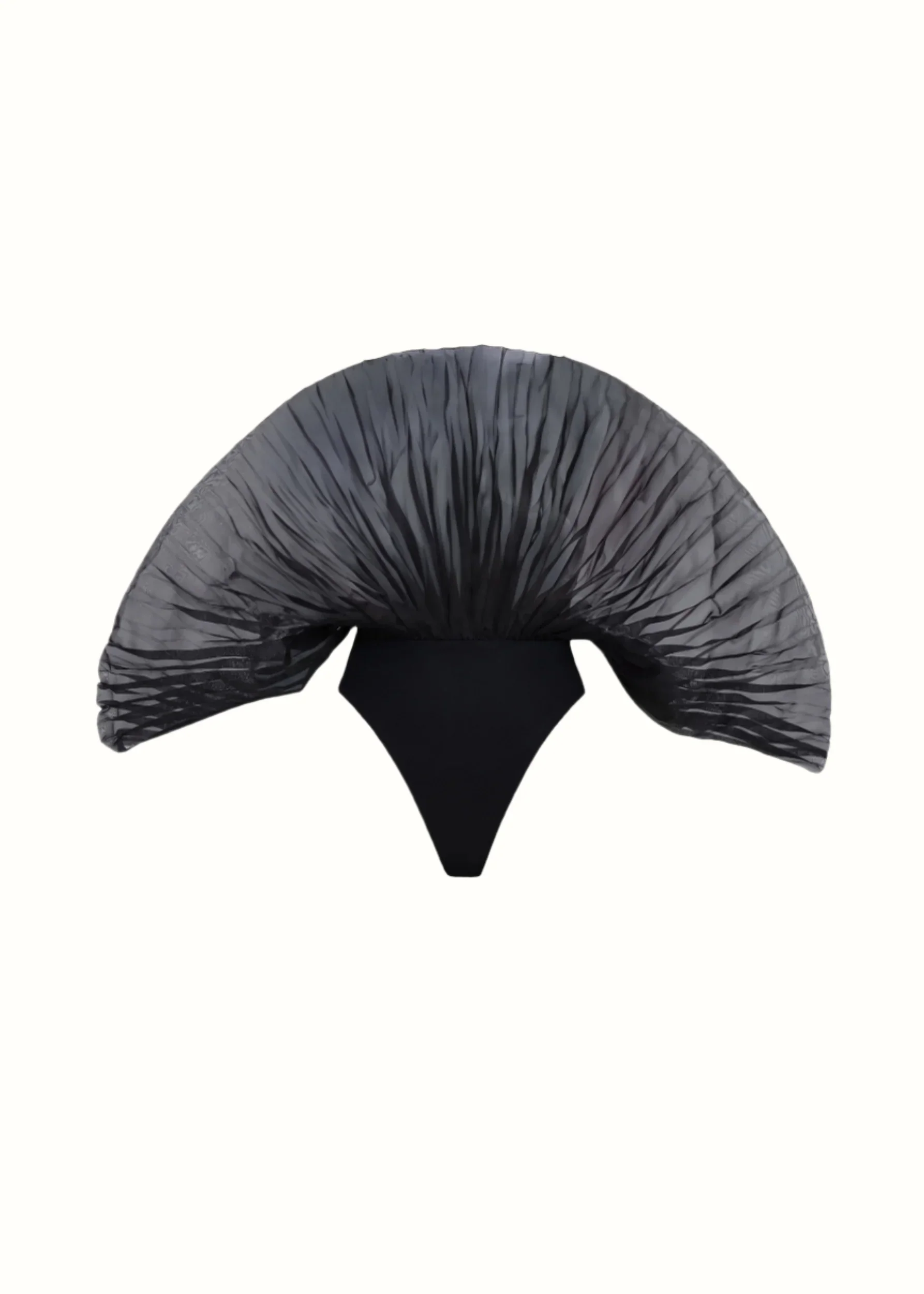 The SOMBRA bodysuit is a sculptural masterpiece and is back in a wine color. Playing on the delicate nature of organza and the textural appeal of pleats, this style was inspired by the unique patterns and proportions of mushroom caps. The SOMBRA bodysuit features an inner knit leotard layer with a convenient snap closure. Confidently pair the SOMBRA leotard with the RIDA DRAPE SKIRT or the UTA PANTS ONYX for a monochrome look. 100% Polyester Organza, Knit contrast 82% Nylon, 18% Spandex Sculptural pleated organza layer Knit contrast thong- panty with snap closure Wash Instructions: dry clean only Lining: Partially Lined Model Size: 5'8 and wears a size S