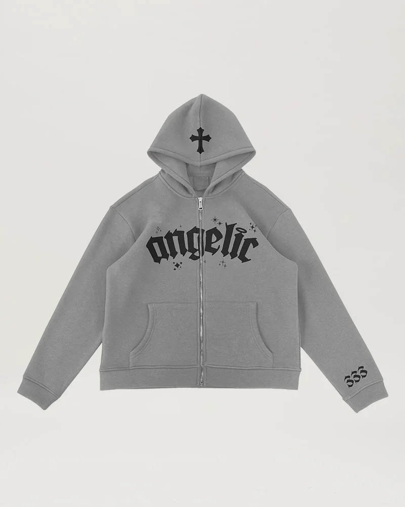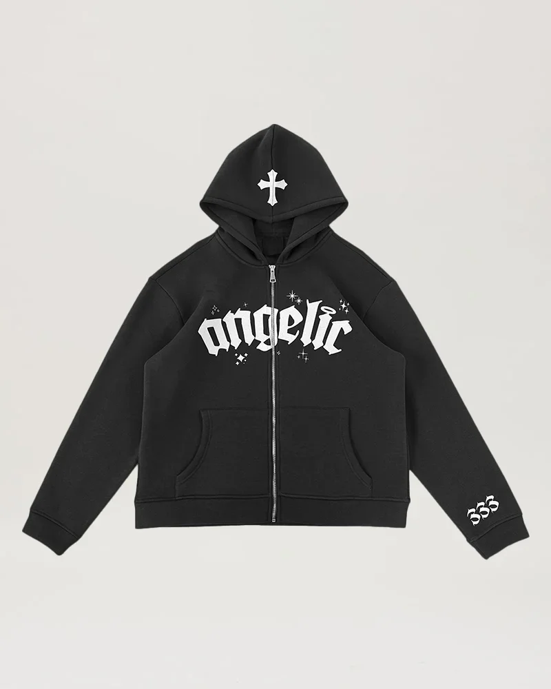 "The Onyx Zipup" Stand out from the crowd and experience the perfect blend of precision, luxury, and durability with the Angelic Zipup. Upgrade your wardrobe today and redefine your closet. Satin Lined Inner Hood: great for protecting and maintaining all hairstyles Supreme Comfort: crafted with 100% premium brushed cotton Built to Last: over 100,000+ stitches & premium embroidery work