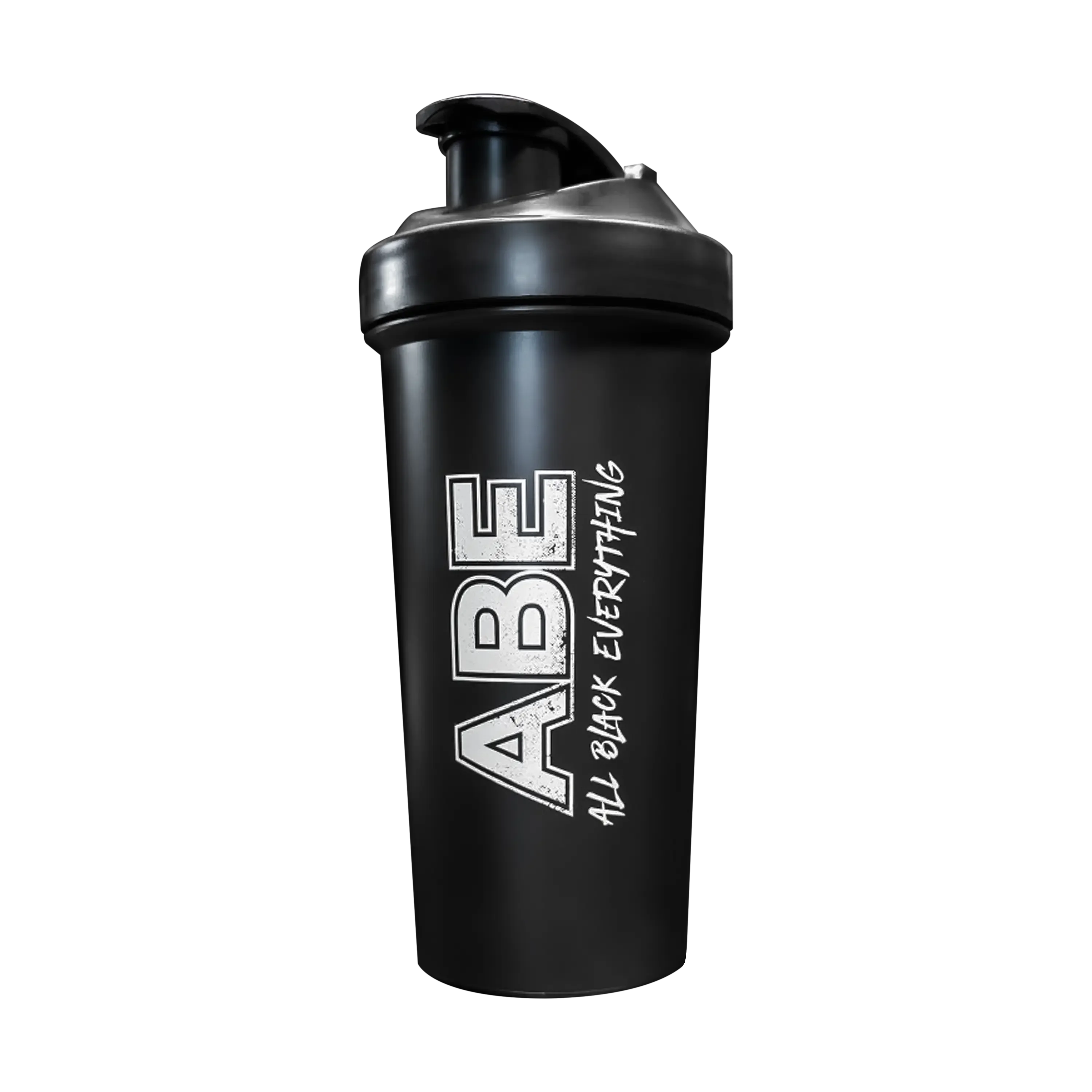Sleek, black shaker cup for mixing your favorite ABE Ultimate Pre-Workout or ISO Whey Protein. 700ML (23.6 oz) capacity. Screw-on lid creates leak-proof seal, and flip cap snaps securely shut to keep contents contained; loop top for easy carrying or attaching keys. Includes mesh insert to mix powders with ease without leaving you with lumpy fluid or protein. Wide mouth makes it easy to add your scoops of ABE Protein or Pre-workout, and embossed markings measure both ounces and milliliters; rounded base for thorough mixing. ABE Shaker - Specs: 8.5'' (H) Bottom to Top of Lid 3'' (W) - Body of Shaker [3.5'' (W) at Lid] 10.5'' Circumference - Body of Shaker [11.5'' at Lid Base]