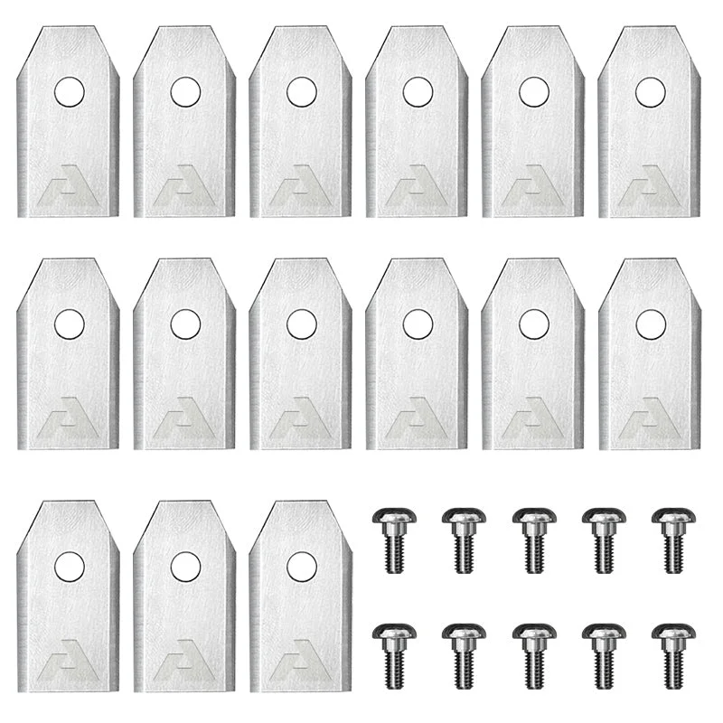 Material Stainless Steel Color Silver Product Dimensions 1.37" x 0.7" Package Quantity 15 Blades + 10 Screws Applicable Robot Mower Pion Series / Genie Series