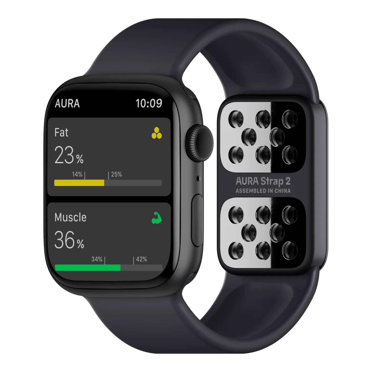 Track fat, muscle, water levels on your Apple Watch with AURA Strap 2. Set goals and improve your fitness performance with precise body composition tracking.