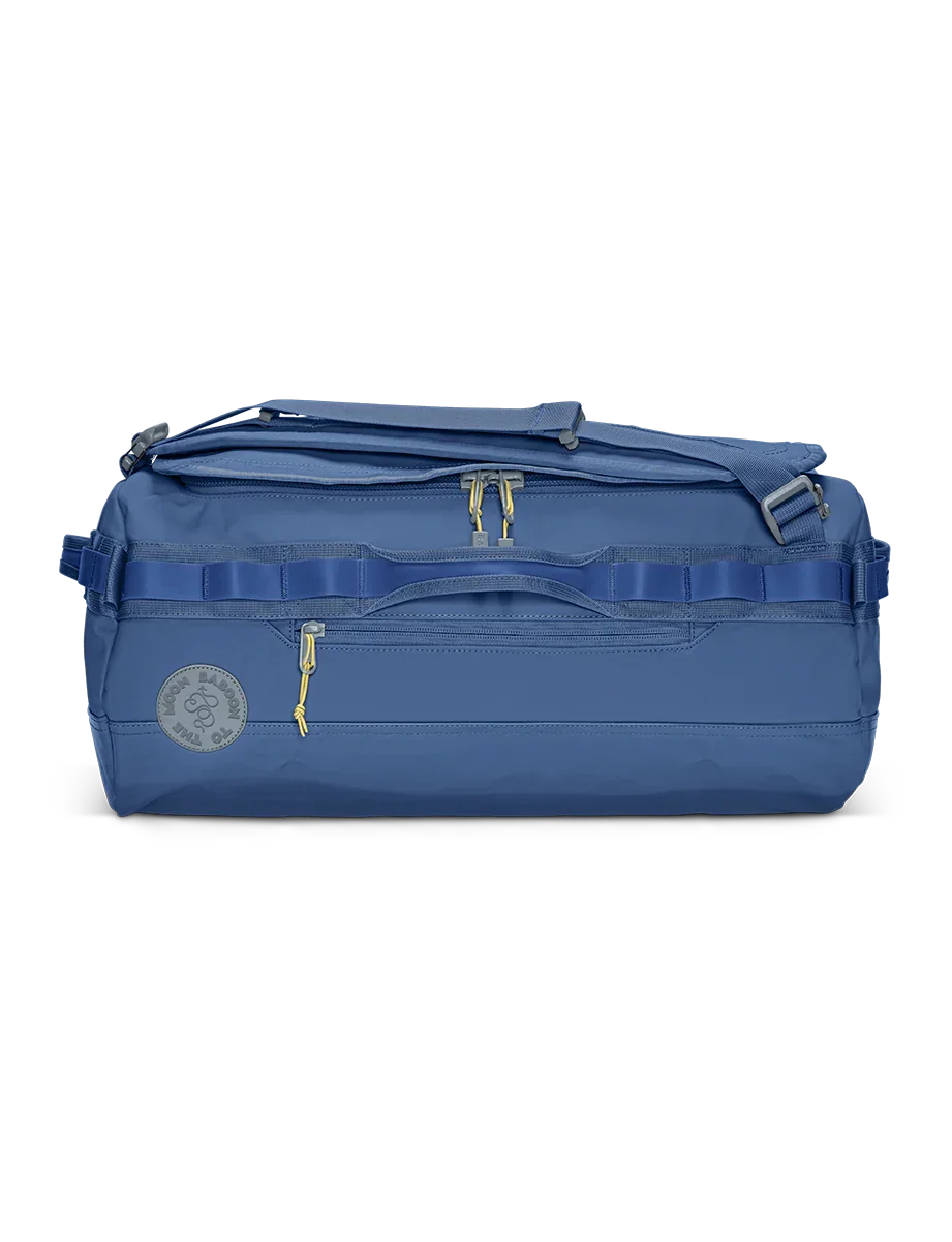 Fits 5+ days worth of clothing and if traveling by way of airplane, acts as TSA checked luggage. Perfect for longer trips and can easily be tossed in the trunk for a road trip, fitting both your and a partner's belongings. This duffle will survive anything you throw at it and should not be treated preciously.