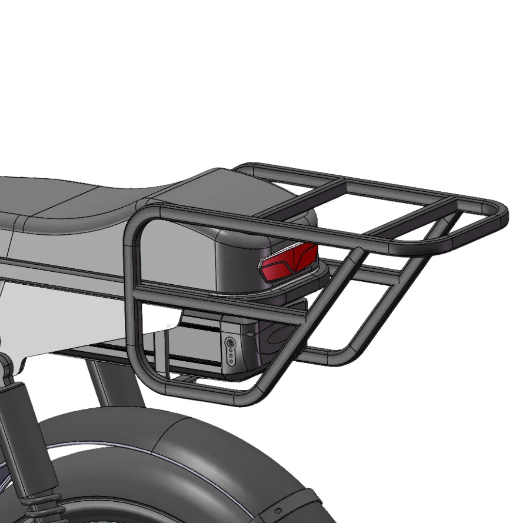 No matter where your destination lies, our specialized aluminum alloy rear rack has you covered for any extra gear you may need. Whether it's camping, running errands, or hitting the waves for some surfing, we've made it easier and more enjoyable for you. Our rack is designed to assist you in carrying up to 35 lbs.