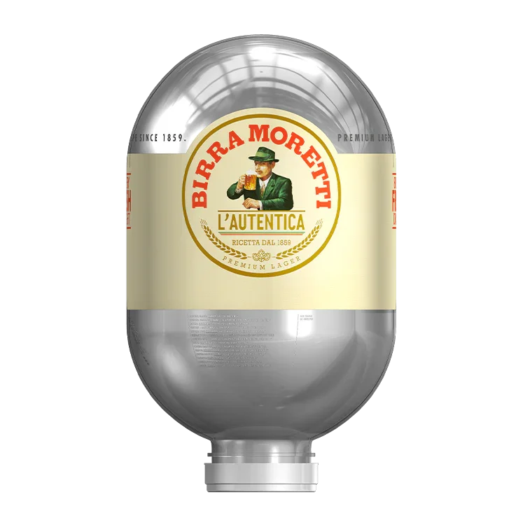 Birra Moretti L'Autentica Ricetta Originale lager is a classic Italian pilsner, brewed since 1859 and known worldwide for its authentic taste and craftsmanship. This Italian lager beer offers a perfectly balanced taste experience, where soft malt notes come together with a mild hop bitterness. With an alcohol content of 4.6%, Birra Moretti L'Autentica is a refreshing and accessible choice for any beer lover. This Ricetta Originale lager has a bright, golden yellow colour and a firm, creamy head. The flavour is harmonious and slightly sweet, with delicate notes of grain and a subtle bitterness coming from carefully selected hops. The refined and refreshing finish makes Birra Moretti L'Autentica the perfect beer to enjoy with a meal or in the company of friends. The beer is brewed using traditional methods, ensuring quality and consistency. Birra Moretti L'Autentica is an excellent accompaniment to Mediterranean dishes such as pizza, pasta and grilled fish, but also goes well with various snacks and light meals. This is one of the most versatile Italian beers out there, making it suitable for all kinds of occasions. Enjoy fresh pints of Birra Moretti L'Autentica with the BLADE beer machine . Explore our complete selection of BLADE kegs , where you can buy beers kegs, including Birra Moretti Baffo d'Oro .