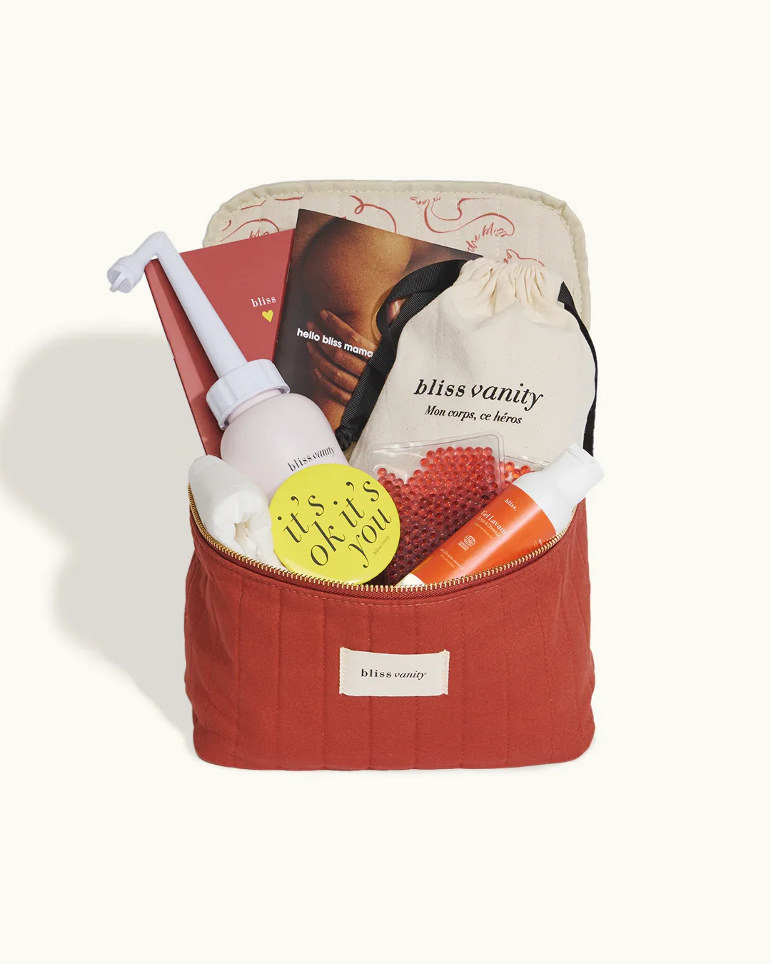 Les indispensables pour vivre sereinement l'après-accouchement. 🥇 2021 : sortie de notre Bliss Vanity, 1er Vanity post-partum en France. 🆕 2024 : nouvelle version, avec les retours de +5 000 mères. 💛 Aujourd'hui : Best seller Tous les soins et produits essentiels pour les 1ers jours après l'accouchement, Adapté à tous les scénarios : voie basse, césarienne, douleurs, déchirures... Co-créé avec la communauté Bliss depuis 2018, Trousse réutilisable en indispensable pour transporter les affaires des minis, glisser ton maquillage ou tes chaussettes pour partir en week-end...