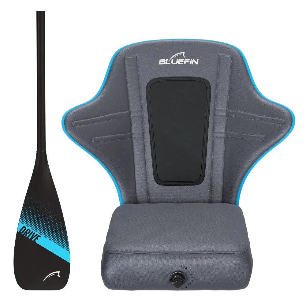 *Dieses Kajak-Kit ist nur mit unseren neuen 2025 Cruise & Lite Boards kompatibel. Für Stand-Up-Paddler, die ihren Wasserausflügen eine neue Dimension hinzufügen möchten. Entfesseln Sie das volle Potenzial Ihres Paddleboarding-Erlebnisses mit dem Cruise Kajak-Umrüstkit. Der Bluefin exklusive aufblasbare Kajaksitz ist der bequemste Kajaksitz auf dem Markt, sodass Sie stundenlang auf dem Wasser verbringen können. Ob Sie eine Abwechslung auf Ihrem SUP suchen oder sich einfach nicht zwischen einem Paddleboard und einem Kajak entscheiden können, dieses Kit bietet die Flexibilität, beides zu genießen. Die einfach zu verwendenden Clips lassen sich mühelos an den reflektierenden D-Ringen des Boards befestigen und verwandeln es im Handumdrehen in ein Kajak. Tauchen Sie ein in Komfort und Bequemlichkeit, während Sie sich auf vielfältige Wasserabenteuer begeben.