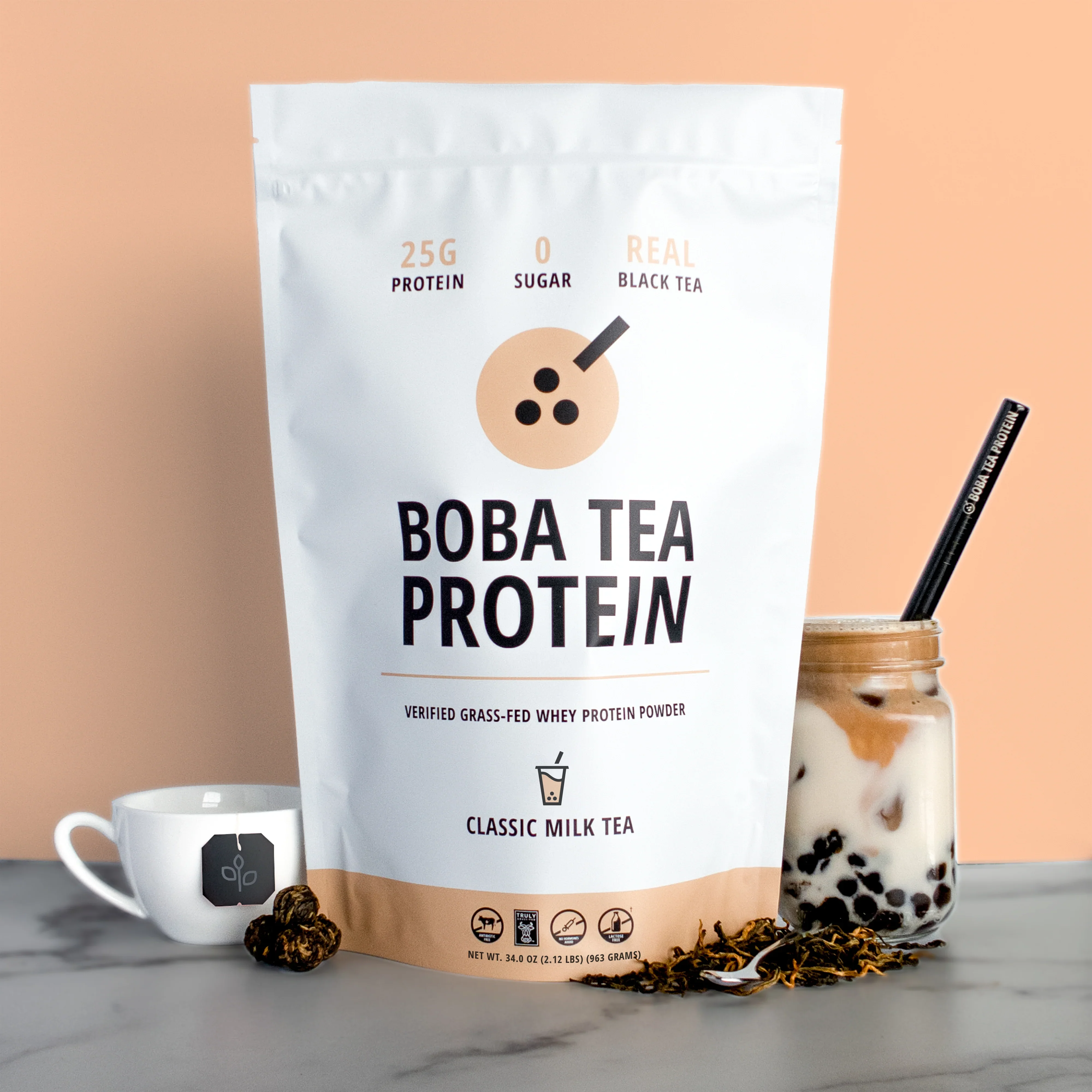Boba Tea Protein (bubble tea protein) makes it easy to get your boba fix and stay healthy. Our boba protein powder drinks use REAL ingredients to capture authentic Asian-American flavors and are combined with a rich, grass-fed whey that you can only get from ethically-raised cows.