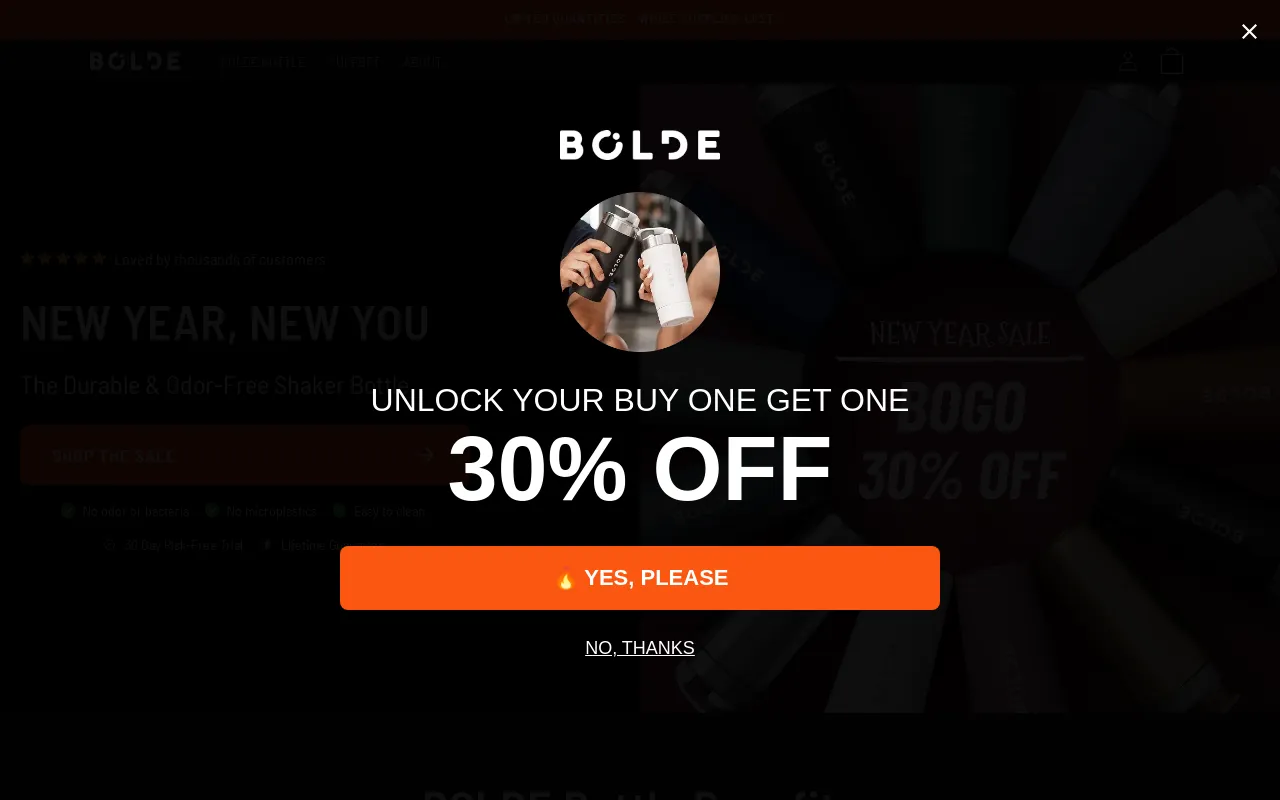 Upgrade your health routine today with BOLDE ✔️ No Odor, Bacteria, or Microplastics ✔️ Zero Leak Silicone Seal ✔️ Silent Mixer (No annoying rattle) ✔️ Dishwasher Safe ✔️ Lifetime Warranty ""Bolde takes the shaker bottle to new heights” - Men's Health Top-Rated Shaker Bottle 4.8/5 ⭐⭐⭐⭐⭐ 🔓 BOGO 30% Off + Free Shipping | 30 Day Risk-Free Trial