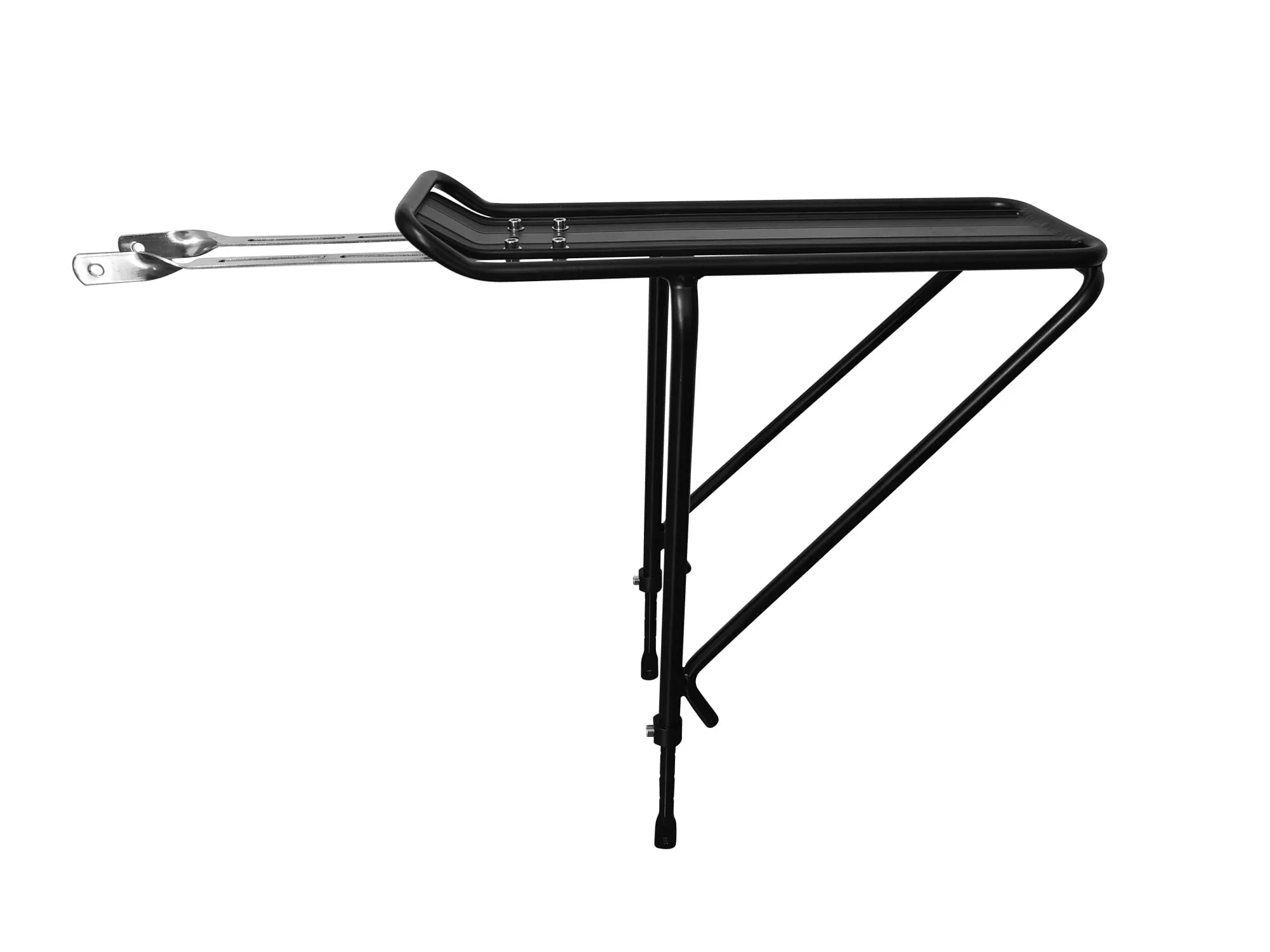 Sturdy, rustproof, and polished to perfection, our lightweight alloy adjustable rear carrier (also known as a rear rack) gets the job done beautifully. We suggest you pair it with our wooden rear crate and let your bike do all the work: carry your books, your groceries, your briefcase-- whatever you need, wherever you're going. Adjustable struts and adjustable legs Fits most adult bikes with 24"-29"/700c wheel sizes with braze-ons Fits most standard pannier bags 45 lb weight capacity Compatible with all our models NOTE: When ordered with size 14/S Lorimer, size 15/XS Roebling you will also need to purchase extended stays Professional installation strongly encouraged