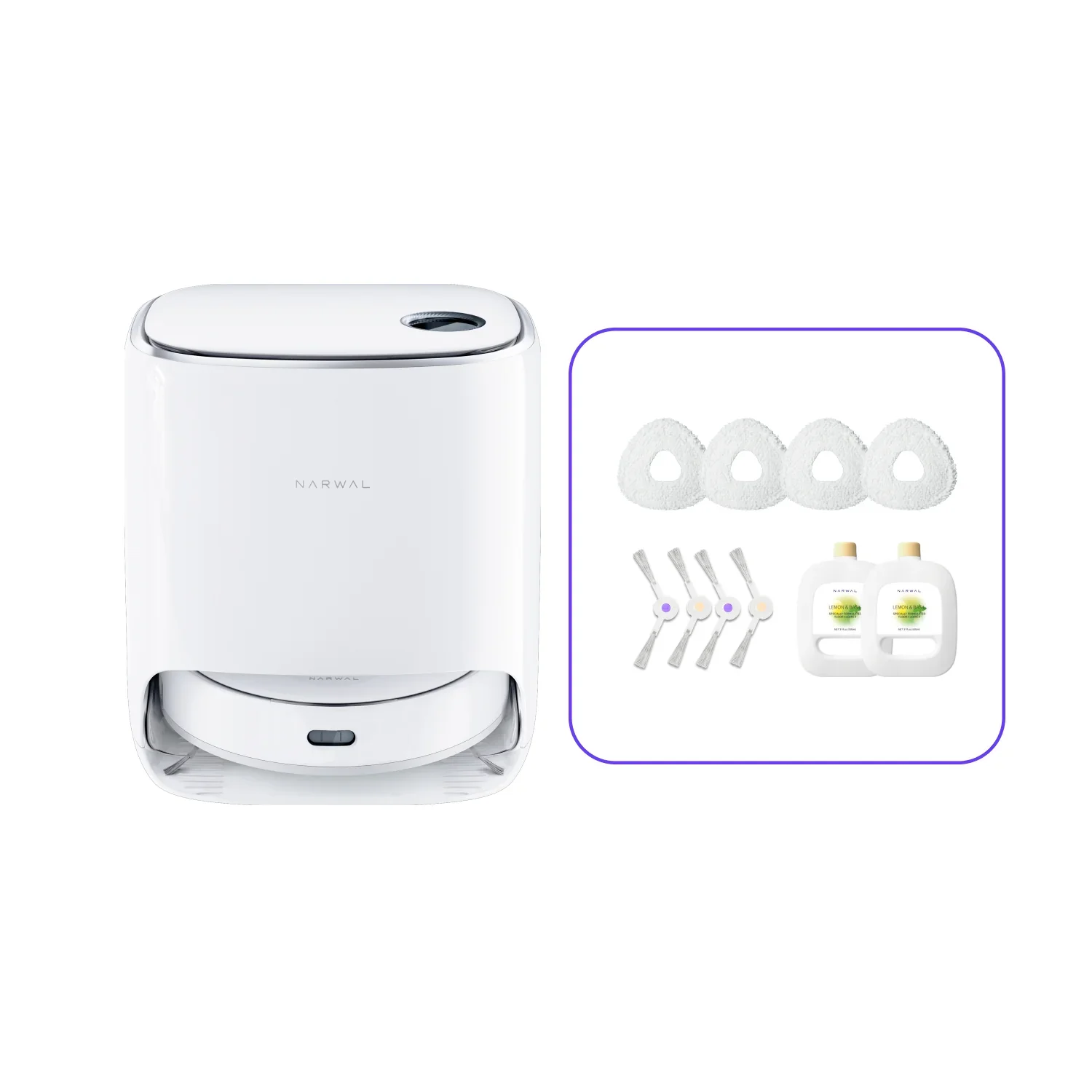 Narwal’s exclusive detergent sheets are specially formulated to reduce corrosion and prevent damage to and avoid issues with the base station, pumps, and tanks. Our detergent sheets have also been designed to cut down on foam by using fast de-foaming properties. The use of other cleaners may lead to corrosion in the T10's water system, inhibiting the proper function of the unit. Frequent water overflow from the base station due to excessive amounts of foam may also occur. Ingredients: Sodium dodecyl sulfate, polyvinyl alcohol, Sodium alpha-olefin Sulfonate, glycerine, deionized water, essence, tartrazine, EDTA disodium salt, Sodium polyacrylate. We strongly recommend including Narwal’s exclusive detergent sheets when purchasing a T10.