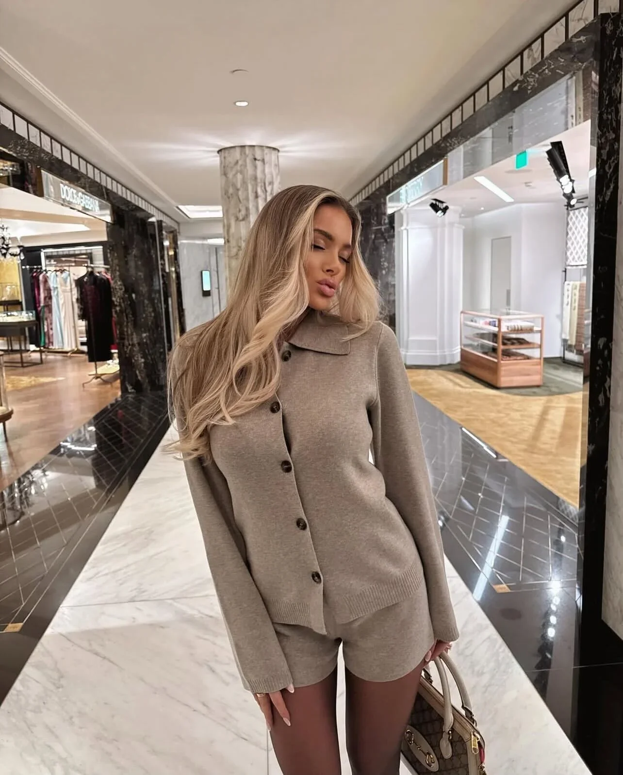 The perfect co ord has just landed. This knit co ord with button up detailing is a wardrobe essential. Pair with a pair of tights and your favourite heels for the perfect date night outfit. Product Details - Thick Knit material - Button Up fastening - Long Sleeve Collar detail - Matching shorts Size Guide Model is wearing size 8 Look After Me Machine wash according to instructions on care label