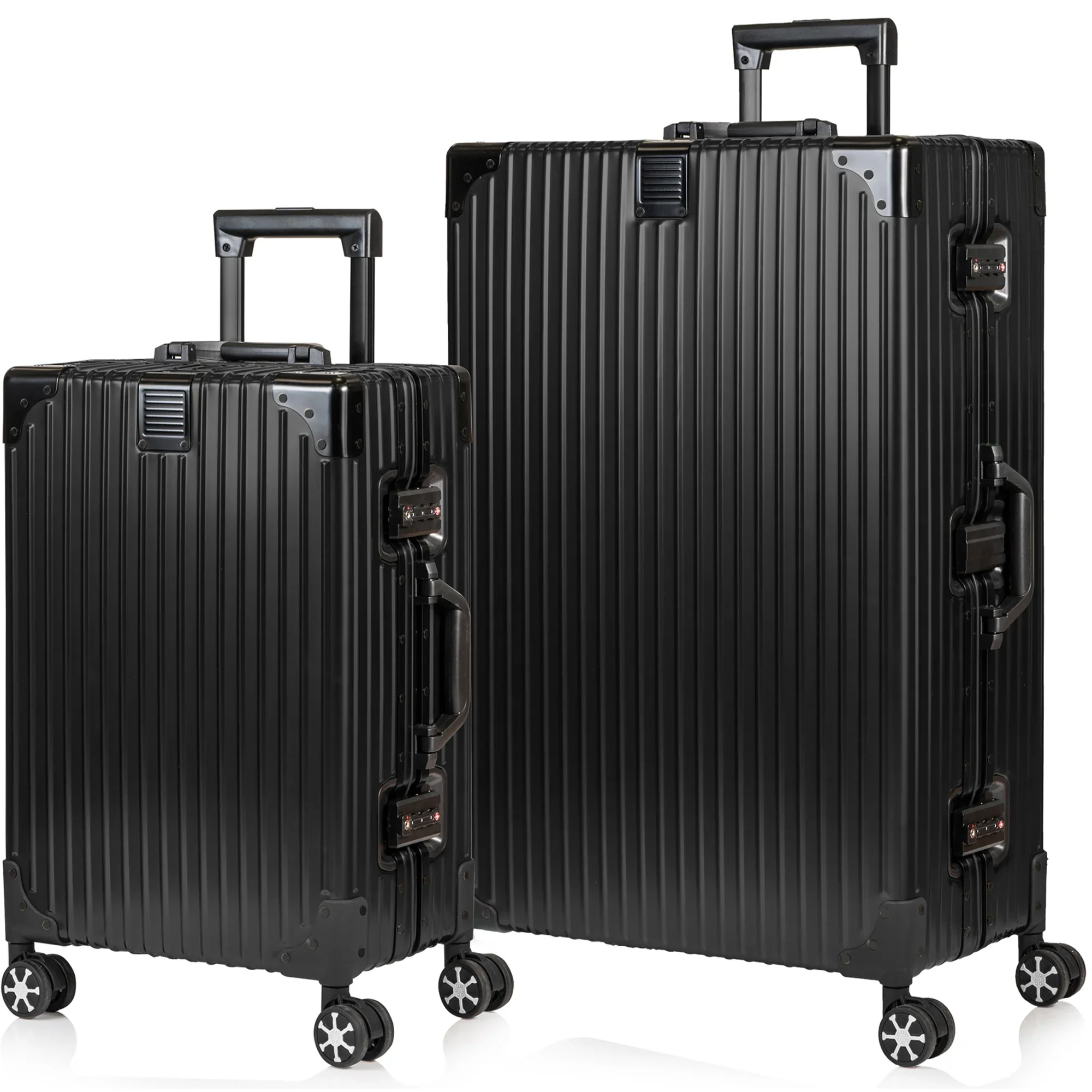 Step into the world of effortless travel with the Elite Collection Aluminum 2-Piece Set from Champs. Featuring both the Carry-on and Large Check-in bags, this premium set is designed to offer travelers the perfect combination of convenience, security, and style. Crafted from durable aluminum, these pieces are built to withstand the demands of travel while maintaining an elegant, modern look. With dual TSA-approved combination locks, your belongings remain safe, giving you peace of mind wherever your journey takes you . Seamlessly gliding on 360-degree spinner wheels, the Elite Collection 2-Piece Set ensures smooth navigation through airports, hotels, and city streets. Inside, both cases feature a well-designed compression system to keep your items secure, along with a clip-in pocketed panel and zippered compartments for impeccable organization. Whether you’re heading on a short business trip or an extended vacation, this set adapts to your travel needs, offering both compact convenience and ample storage . Not only does the Elite Collection Aluminum 2-Piece Set offer superior functionality, but it also allows you to travel in style with a coordinated, matching set. Stand out with a sleek, unified look that exudes sophistication and ensures your luggage is easily recognizable. Ideal for frequent travelers, business professionals, and adventurers alike, the Elite Collection Aluminum 2-Piece Set is the ultimate companion for those who demand durability, elegance, and efficiency in their luggage. Elevate your travel experience and embark on every journey with confidence and style.