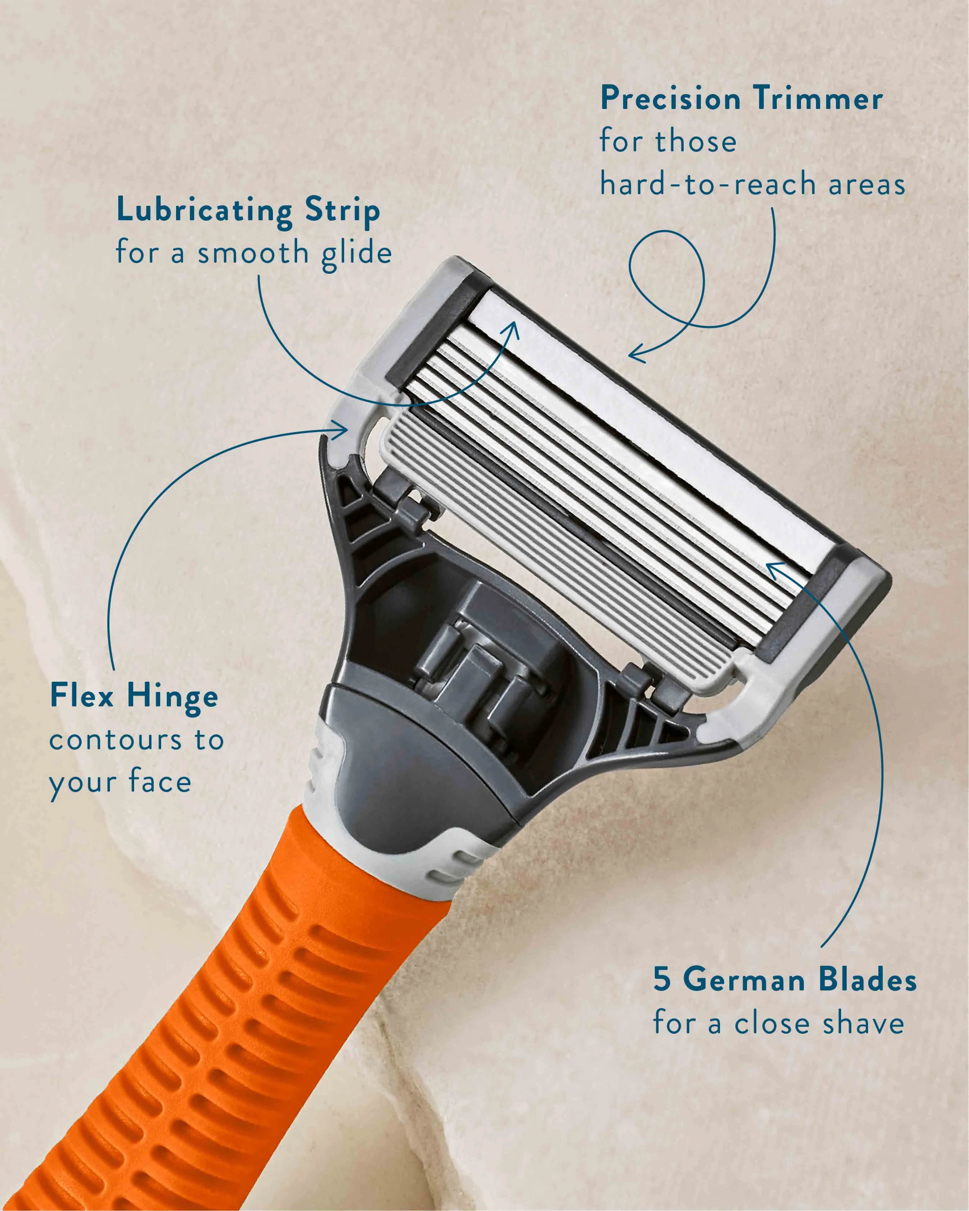 Designed for a close, comfortable shave Engineered in our German factory from high-quality Swedish steel Each razor cartridge features a flex hinge, so blades follow the contours of your face Our aloe vera lubricating strip provides an even glide and smooth finish Clean sharp blades will reduce friction and snagging, you want to swap out your blades regularly. For the smoothest shave, we recommend changing your blades every 6-8 shaves