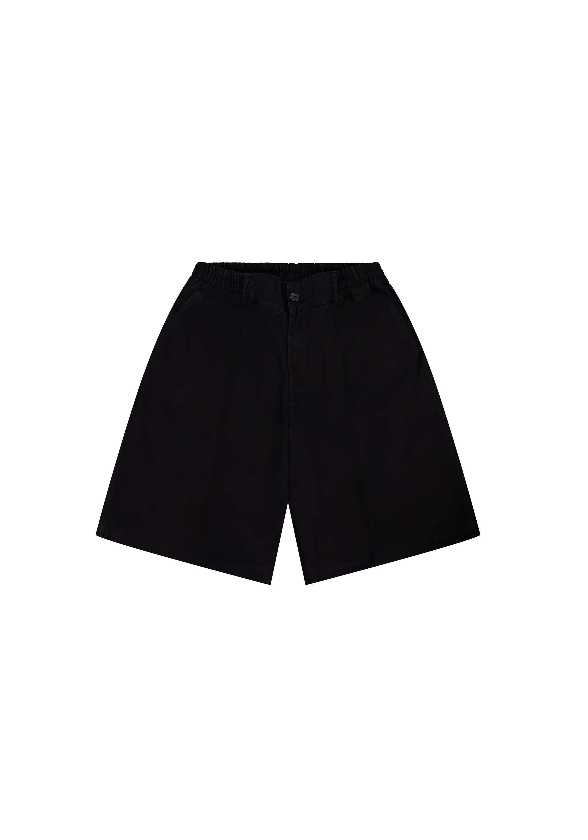 Elasticated waist Deep pleat on each side Side entry front pockets Flapped back pockets 100% Cotton Drill Made in China