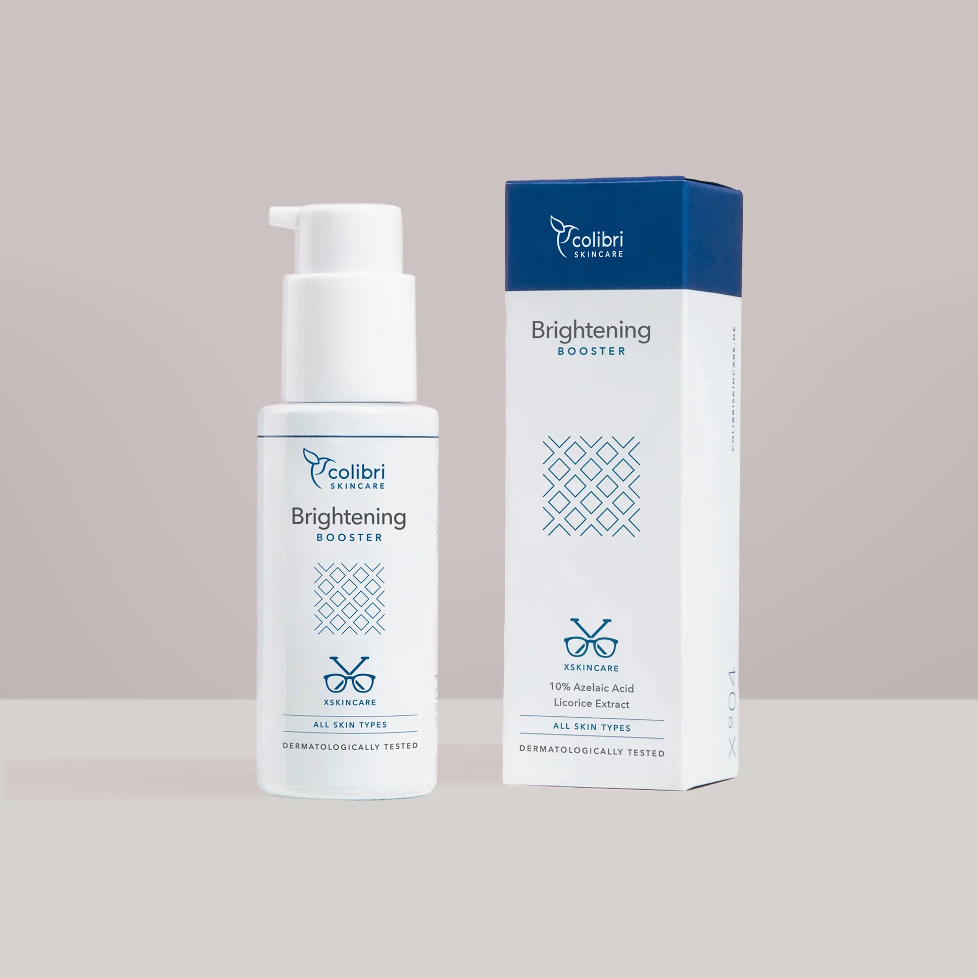Der Brightening Booster kann einem fahlen Teint entgegenwirken und Hyperpigmentierung sowie Pickelmale verblassen. Er beruhigt gerötete Haut und kann sogar von empfindlichen Hauttypen verwendet werden. Die hochwirksame Kombination aus 10% Azelainsäure wird durch Süßholzwurzel-Extrakt, Grüntee.Extrakt und Mandelsäure unterstützt und kann die Haut auf verschiedene Weisen verbessern. Beruhigende und pflegende Lipide wie Jojoba- und Pflaumenkernöl sorgen für eine gute Verträglichkeit, sogar bei empfindlicher Haut.