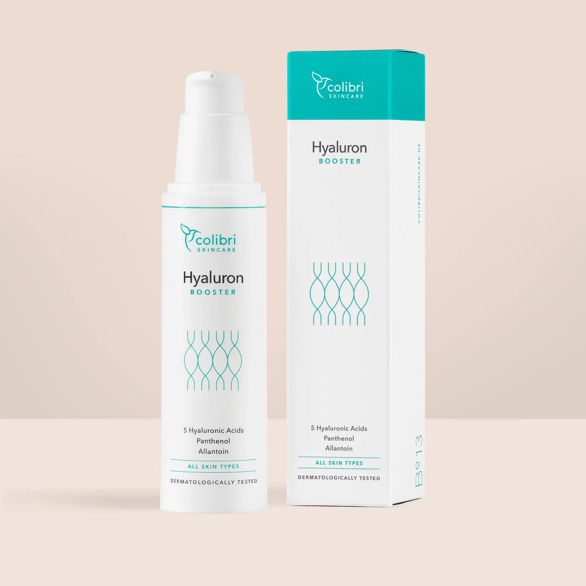 Der Hyaluron Booster enthält einen Komplex aus fünf aufeinander abgestimmten Hyaluronsäuren, die in verschiedenen Hautschichten wirken und dort gezielt Feuchtigkeit spenden. Er verbessert die Spannkraft der Haut und fördert die Bildung von Kollagen, sodass Falten gemindert werden können. Die Haut wird intensiv mit Feuchtigkeit und Nährstoffen versorgt und erscheint glatter, praller und straffer.