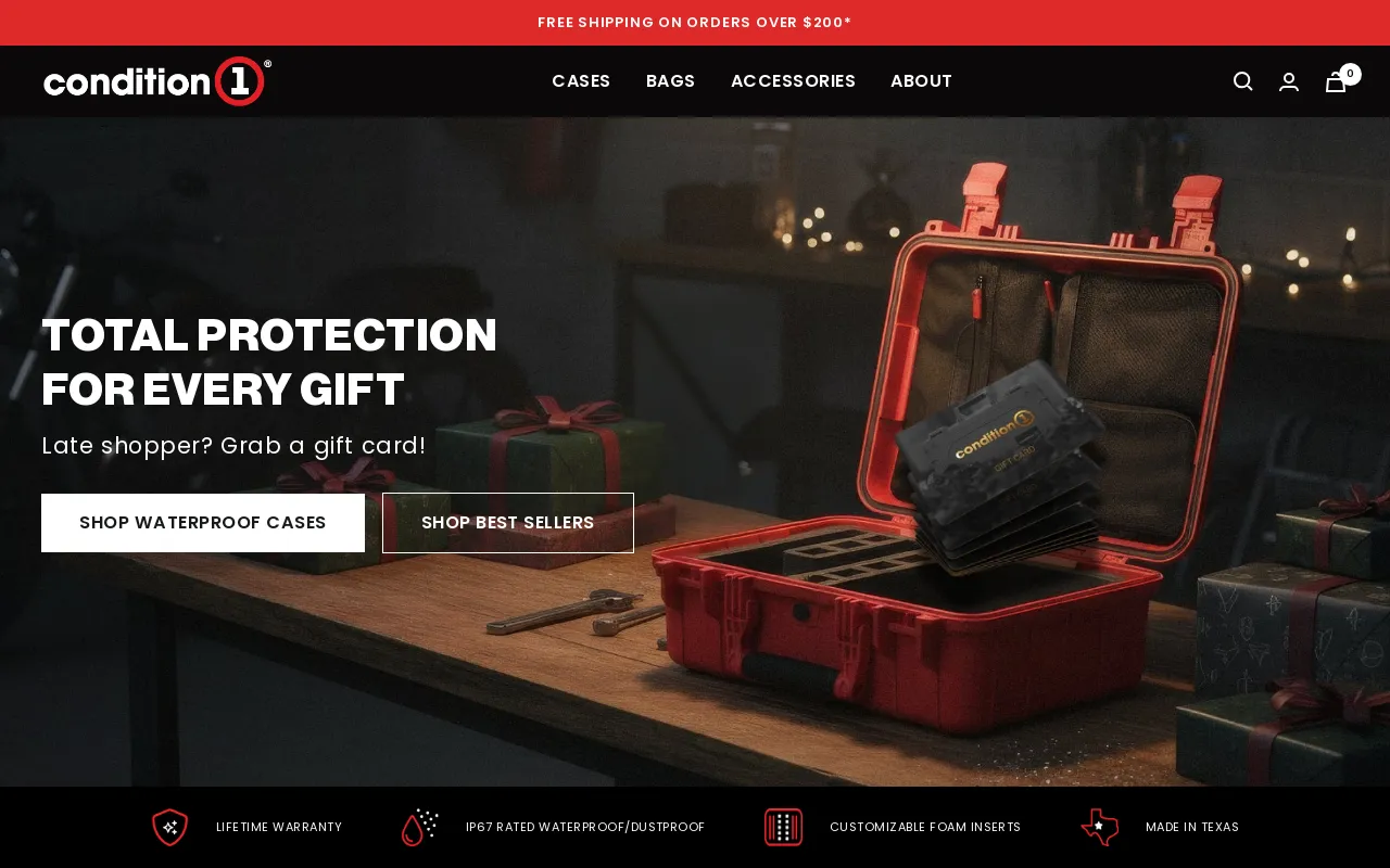 Discover durable, USA-made waterproof hard cases by Condition 1 Protect your gear with our rugged, customizable cases for cameras, rifles, and more. Shop online