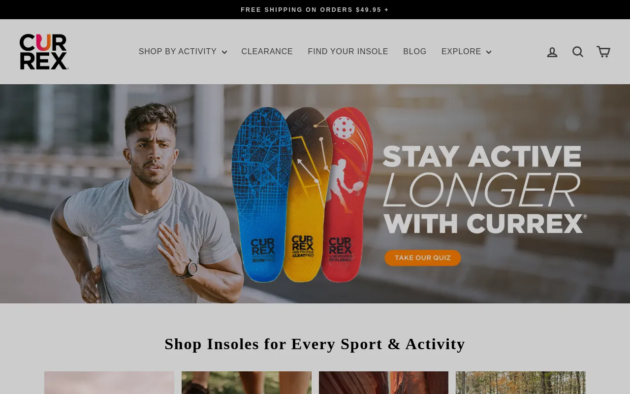 Rated #1 in comfort & foot pressure relief, CURREX ® RUN PRO ™ insoles help improve support, stability, and comfort to reduce the risk of injury, ease fatigue, and boost performance. No running shoe is complete without CURREX ® RUN PRO ™ . Dynamic Arch Technology ™ adapts to your arch—HIGH, MEDIUM, or LOW—to provide support that moves with you, absorbs impact, and distributes load. Engineered for rebound and control, RUN PRO ™ helps you go farther with less fatigue—stride after stride. Zero heel drop and a fully decoupled heel work together to support a more natural stride, enhancing fit and flow in any running shoe—no matter how you land. Dual-layer cushioning boosts comfort and helps manage moisture for a smoother run. Description FEEL BETTER PERFORM BETTER ™ CURREX ® RUN PRO ™ insoles are scientifically designed to boost comfort, reduce fatigue, and optimize performance in every run. Whether you're training for your first 5K or chasing a PR, RUN PRO ™ adapts to your stride with dynamic arch support and a fully decoupled heel that moves with your natural motion—not against it. Proven to enhance comfort and reduce pressure underfoot, RUN PRO ™ helps improve efficiency, stability, and endurance mile after mile. Run stronger, recover faster, help prevent injuries, and stay in your comfort zone longer—with the insole engineered to keep you running. Your Profile DYNAMIC ARCH SUPPORT THAT MOVES WITH YOU Shoes are made one way. Feet aren’t. That’s why every CURREX ® insole is engineered in three dynamic arch profiles—HIGH, MEDIUM, and LOW—to match the way your foot moves, not just the shape of your shoe. The result? Personalized support that enhances your natural motion. Need help finding your arch profile type? Use the CURREX ® at-home fitting guide to find the best running insole for you. Uses / Activities WHERE YOU MOVE From daily miles to race day, CURREX ® RUN PRO ™ insoles help you perform your best in: Running Walking High-Intensity Interval Training (HIIT) Triathlon Trail Running Cross Country Track
