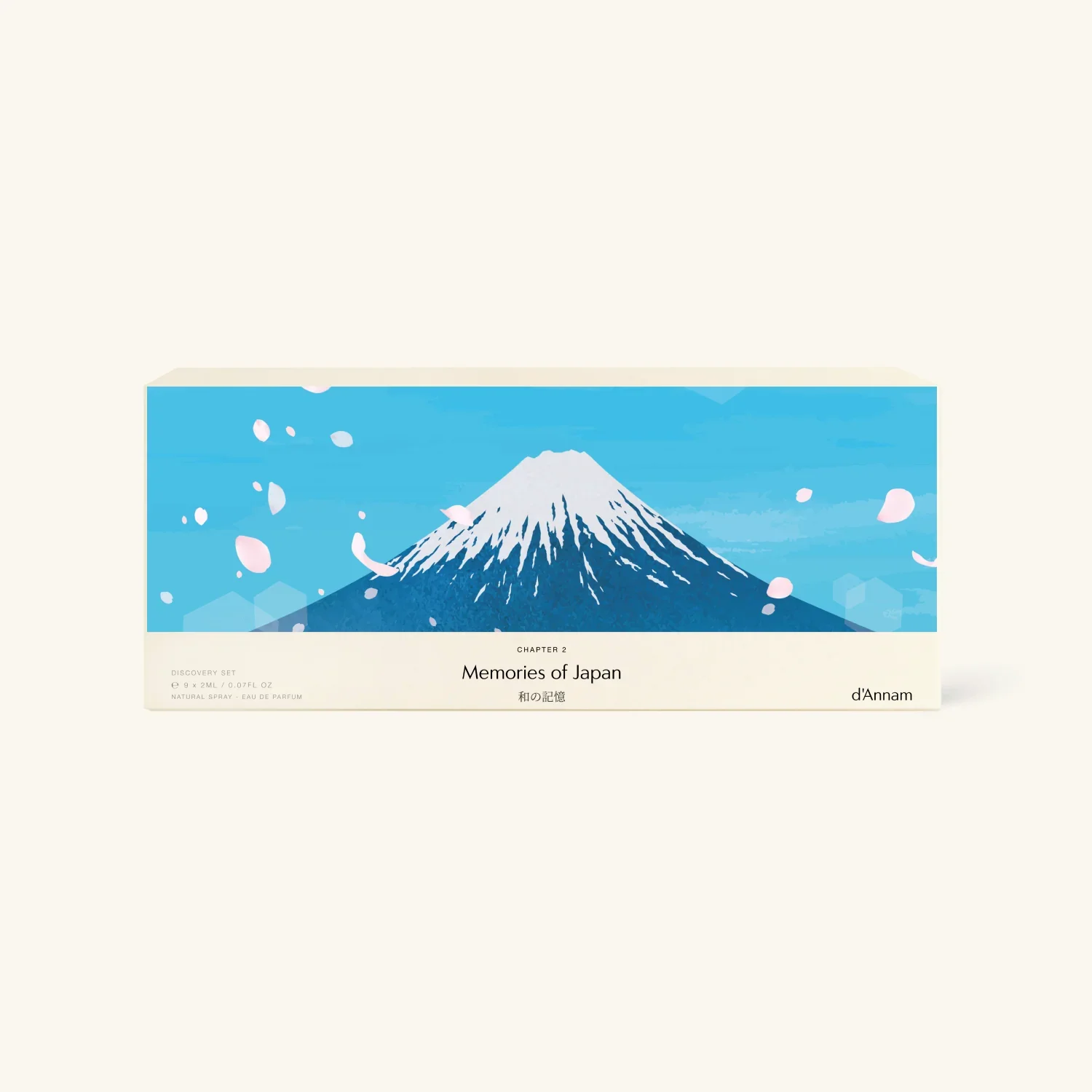 "Memories of Japan 和の記憶" is loving tribute to the rich heritage of Japanese culture. Each of the 9 fragrances in this collection is our humble attempt at distilling Japan's magnificence: Moonlight Samurai 月光サムライ Tokyo Nights TOKYOナイト Sakura Snow 桜吹雪 Matcha Soft Serve 抹茶ソフト Strawberry Mochi いちご大福 Kimono 着物 Arashiyama 嵐山 Hinoki Meditation ヒノキ浴 Japanese Whiskey ジャパニーズ・ウイスキー Special Offer : Save $40 USD on a full-sized bottle when you purchase a Discovery Set. To redeem this offer, use code DANNAM on your next purchase. Please ensure that you use the same email address for your order. If you have any issues with perfume leaks or packaging, please email us and we'll sort it out for you: [email protected]