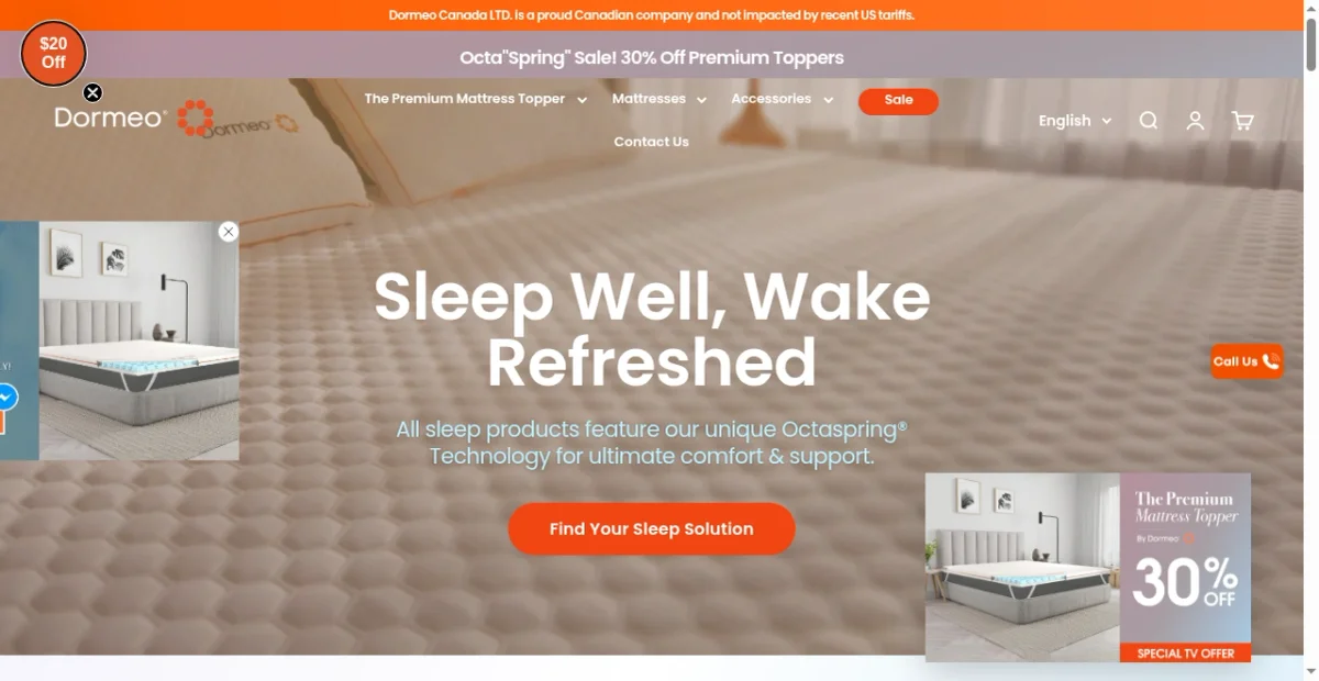Dormeo® improves sleep with our mattresses, toppers, and pillows featuring our Patented Aerospace Octaspring® technology. Cool Sleep! Amazing Reviews!