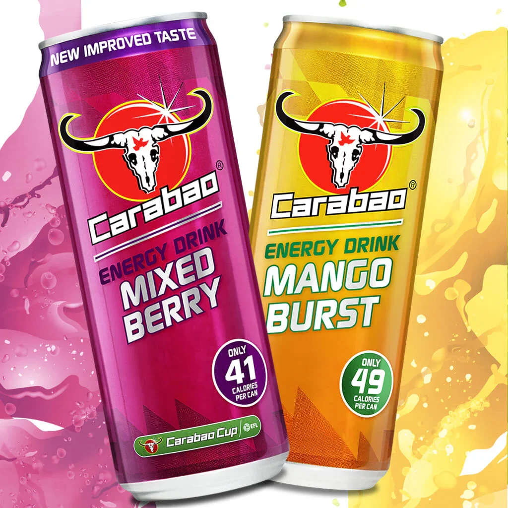 Carabao is the great tasting low calorie energy drink with sparkling light fruity flavours that taste like a soft drink. Half the sugar of Red Bull and only 63 Calories or less per can. Proud sponsors of the Carabao Cup.