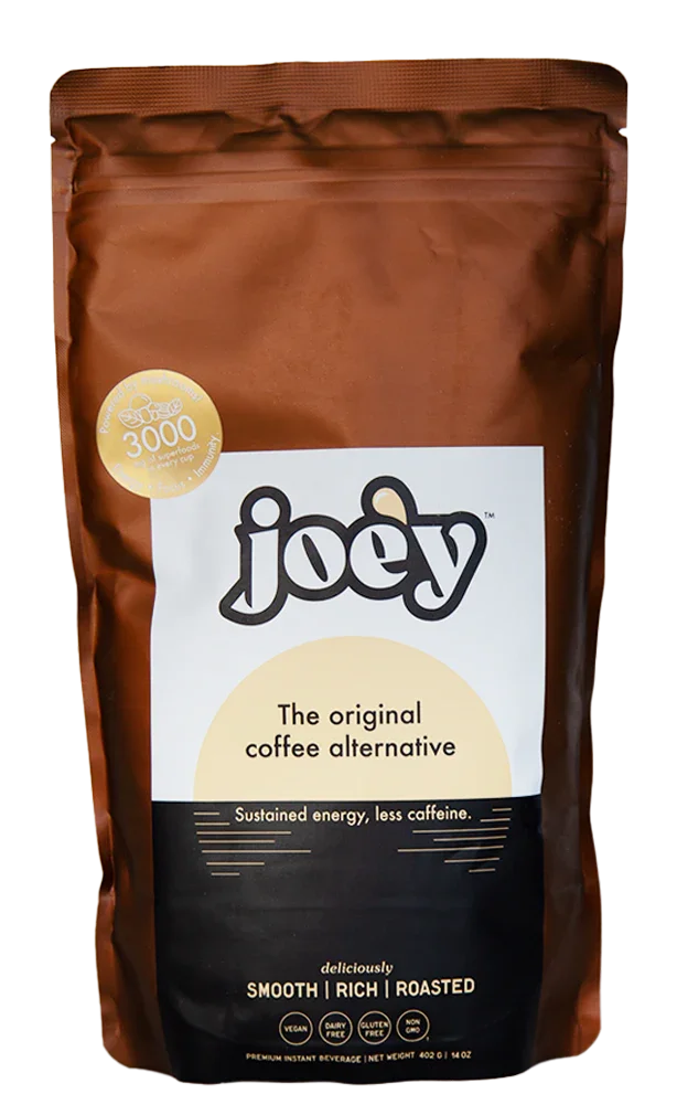 Joe'y isn't coffee. It's your healthier cup of pick-me-up. We took everything you like about your old cup of joe, tossed out the bad stuff (like too much caffeine, the jitters, & the crashes), and added 12 superfoods that naturally boost your energy, focus, & mental performance. Plus, a laundry list of long-term health benefits. Now, you won’t need as much caffeine in the first place! Just swap Joe'y for your coffee and you've got an upgraded version of your morning routine. Now that's what we like to call a great alternative.