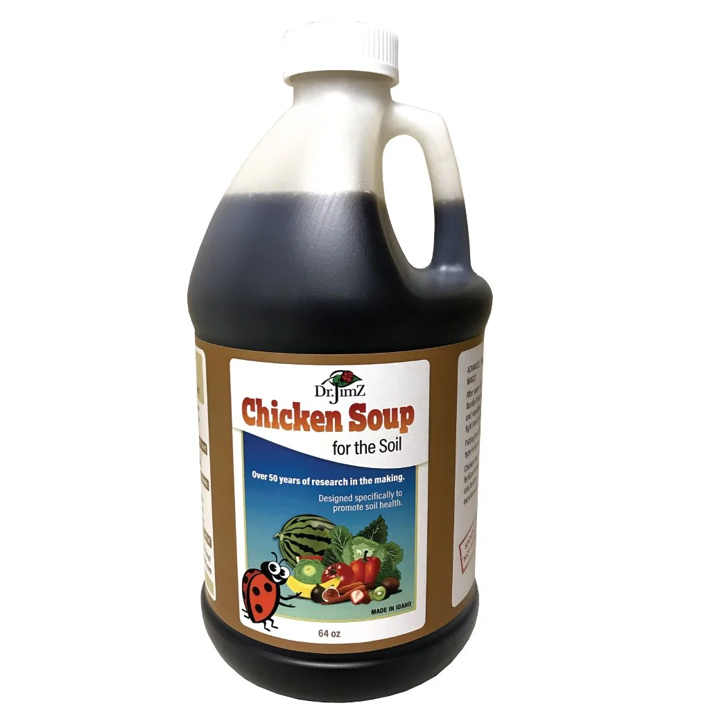 Loaded W/ Nutrients For Higher Quality Fruits and Vegetables! Chicken Soup For The Soil® also known as "the perfect fertilizer" contains all the nutrients that we have identified over the years as being beneficial for edibles; it is designed to stimulate life in the soil, grow large dense crops, tasty fruits and vegetables, high quality buds, and delivers all the nutrition your plants need to meet their maximum genetic potential. There is nothing else like it! Can be used on all fruits, vegetables, herbs, and fruit trees. Makes up to 128 gallons! Rather than force-feeding plants with mainstream chemical fertilizer, we suggest improving your soil by properly feeding the microbes what they need to thrive (microbes need to digest the nutrients in the soil before the plant can effectively use them). Chicken Soup For The Soil® is structured in a way that makes it easy for microbes to absorb, create new life, and fuel plants with everything they need to meet their maximum potential. Feeding the microbes will help you grow happy fruits and vegetables that have impressive color, great taste, a longer shelf life, and are nutritious to eat (pretty much the opposite of the local grocery store). Chicken Soup For The Soil® is the result of over 50 years of R&D and is the most complete fertilizer ever created! Nutrient clusters bind to organic matter and do not wash out of the soil. Nutrients are bioavailable and accumulate over time. Work on all soils. 100% NON TOXIC. NON LEACHING. Contains zero Animal Byproducts (no chicken poop). Makes the best compost tea on earth (see instructions below). Works great in hydroponic systems. Use 1 tbs per gl of water. Perfect for Gardeners, Growers, and Farmers. Save 10% on cases of 6 or more jugs *Also available for commercial use. Tankers, totes, pallets, & barrels. Buy 64oz Chicken Soup For The Soil®! Free Shipping!