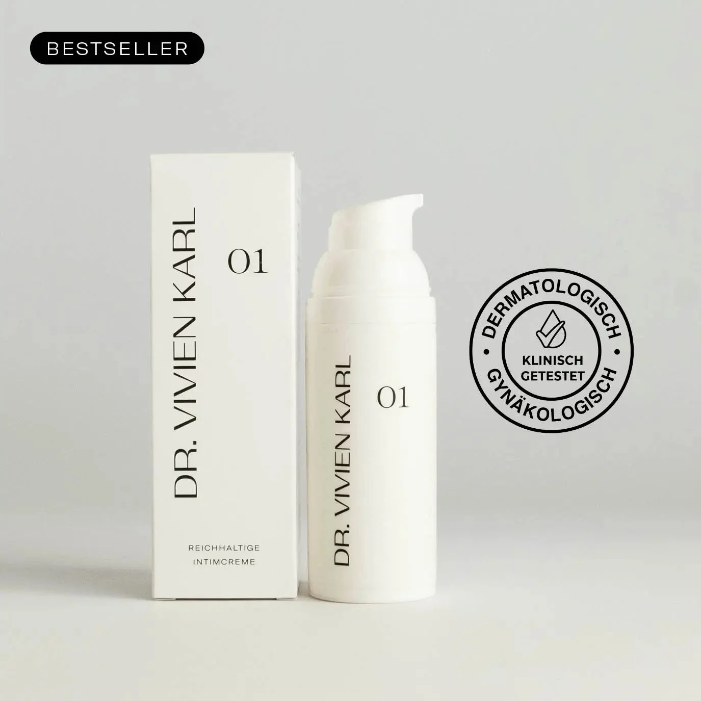 Die Intimcreme 01 von DR. VIVIEN KARL ist eine reichhaltige Creme zur Befeuchtung und Pflege des weiblichen Intimbereichs. Besonders geeignet bei Trockenheit im Intimbereich, vor allem in den Wechseljahren, nach der Schwangerschaft oder bei Lichen sclerosus. Die natürlichen und hochwertigen Inhaltsstoffe bestehen zum größten Teil aus Mandelöl, Hyaluronsäure und Milchsäure. Die Intimcreme unterstützt mit 4,2 den pH-Wert des Intimbereichs und wurde dermatologisch und gynäkologisch getestet und mit 'sehr gut' bewertet. Die Creme wird von Ärztinnen, Hebammen und Apothekerinnen empfohlen. Es gibt eine 100-Tage-Geld-zurück-Garantie und kostenlosen Versand ab einem Mindestbestellwert von 50 €. Die Intimcreme 01 ist bis 12 Monate nach Öffnung haltbar. Bei einer täglichen Anwendung kommst du ca. 3 Monate mit ihr aus. Die Intimcreme 01 ist nicht für Latex-Kondome geeignet.