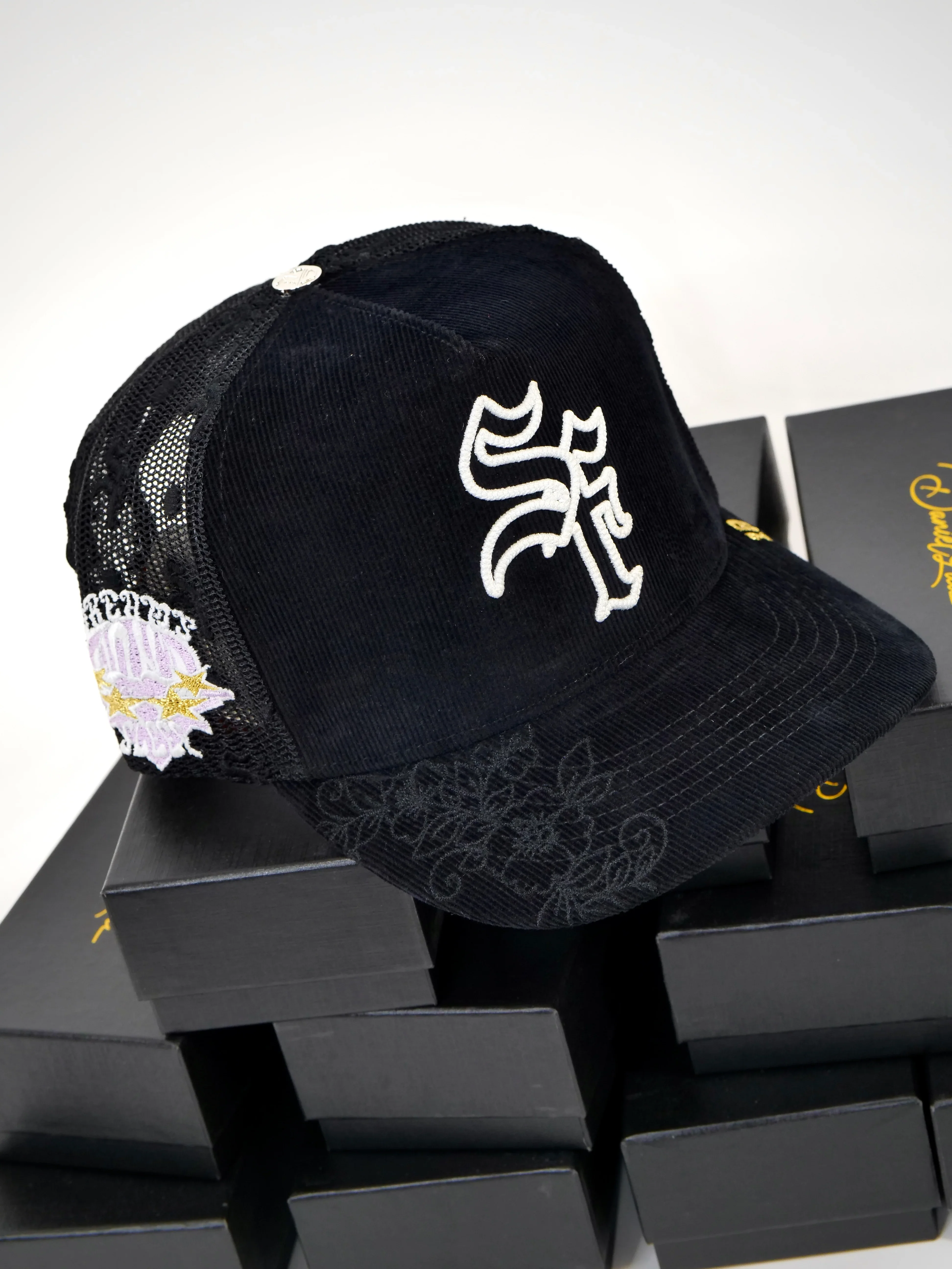 Final Sale : No returns or exchanges. Limited Stock : Ready to ship. Design : 5-panel, structured, high-profile crown. Materials : Handpicked, one-of-a-kind