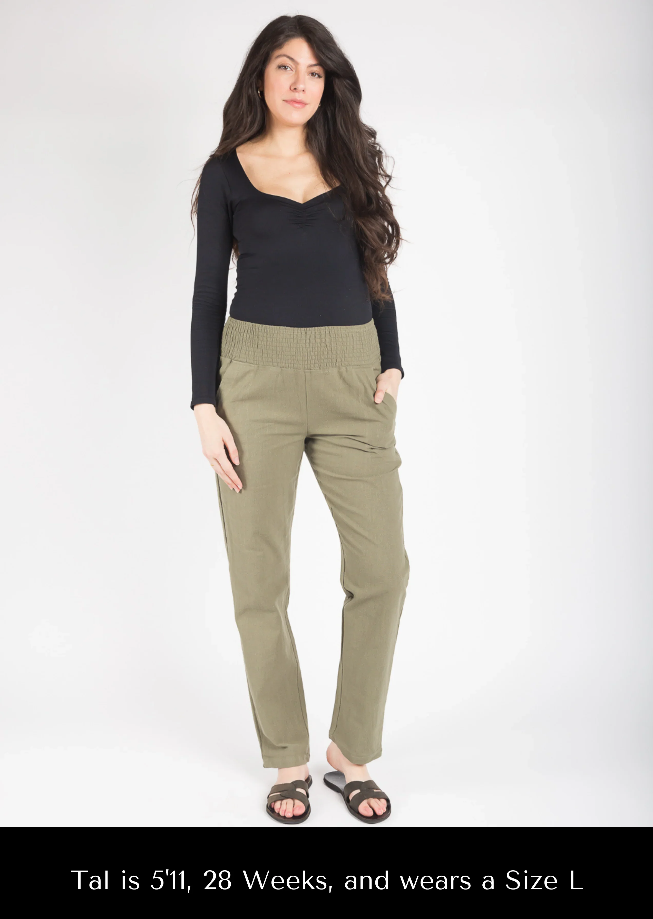 Expertly designed for taller mamas-to-be, our longer length maternity pants is recommended for mamas 5'8" and taller. Made from 100% linen, it also offer a flexible smocked waistband that supports your growing belly throughout all stages of pregnancy and transitions seamlessly into postpartum wear.