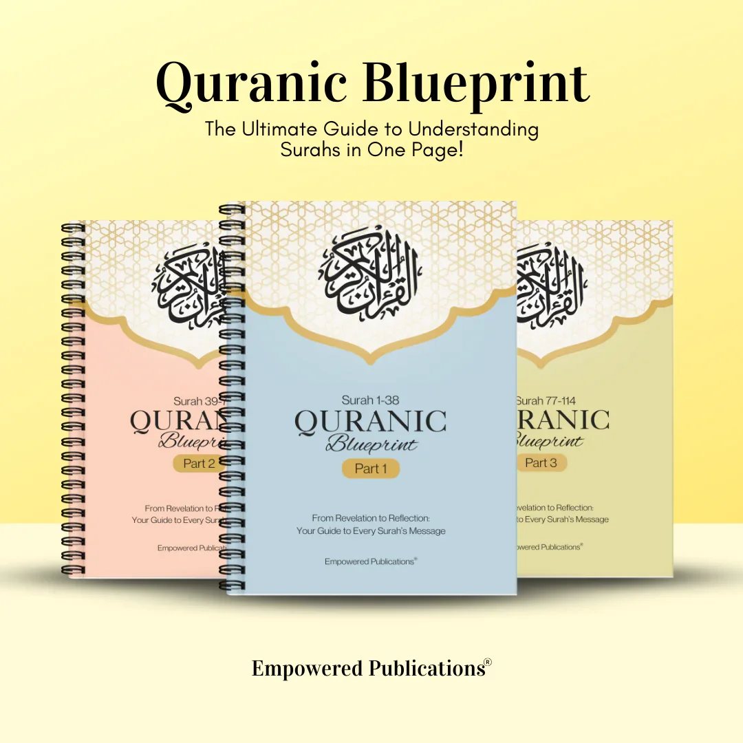 Quranic Blueprint: The Ultimate Guide to Understanding Surahs in One Page Unlock the wisdom of the Quran with our 3-part series , designed for easy learning and deep reflection. Key Features: One Page, One Surah : Simplified, concise, and easy-to-follow layout for each Surah. Clear Context : Provides context, background, and key themes of every Surah. Practical Lessons : Practical guidance and essential lessons for daily life. Perfect for All Levels : Ideal for beginners, students of knowledge, and those seeking deeper reflection. What’s Inside: Part 1 (Surah 1-38) : Foundations of faith, prophetic stories, Islamic principles. Part 2 (Surah 39-76) : Divine attributes, human accountability, guidance for believers. Part 3 (Surah 77-114) : Short, powerful Surahs, perfect for memorization and daily recitation. Start your transformative Quranic journey today with Quranic Blueprint .