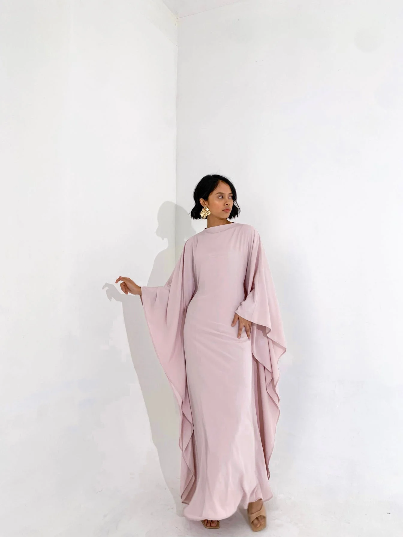 LILA Silk Belted Kaftan in Blush Pink