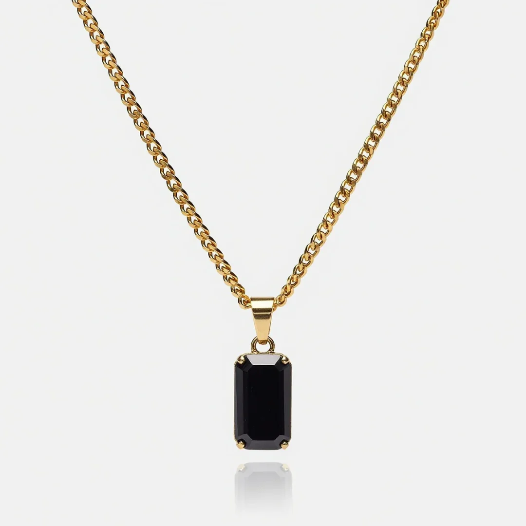 The Eclipse pendant is th e most all-round pendant in the game. With its sharp-cut black stone, it's bound to attract attention and compliments alike. Features a black obsidian stone Comes with a 2mm gold curb chain Premium 18K gold plating Crafted from surgical-grade 316L stainless steel Waterproof—wear it anywhere, from the sea to the shower Heat and sweat resistant—ideal for workouts No discoloration or tarnishing, hypoallergenic (no green skin) Lifetime warranty Model is wearing a 55cm chain Chain Compatibility: The Eclipse Pendant is designed to fit seamlessly on our 3-5mm Cuban chain, 2mm rope chain, 3-5mm Figaro chain, and 3mm wheat chain. Includes Premium luxury (PU) leather travel pouch Lifetime Fade & Tarnish warranty