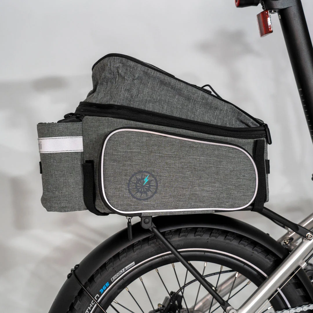 Waterproof & insulated universal trunk bag with roll-out panniers: A regular 'Best Bike Luggage' award winner, the Estarli Trunk Pannier is a fan-favourite for leisure riders. Fits most pannier racks Waterproof Thermally insulated Includes pannier bag cover Drop down side bags for extra storage Bottle holder Quick carry handle Shoulder handle Clothes net Reflective strip Cycling Electric magazine says: " Estarli's Trunk Pannier bag has massive appeal on account of its main compartment being insulated and thus able to keep food cool. This isn't as common a feature as you might think in the world of trunk bags and what's even more exciting about this unit is that the two side pockets contain roll-out pannier bags, giving this far more capacity than you expect. Add to that, there's a toggle secured bottle holder for quick access to your fluids, as well as a shoulder strap that pulls out for convenience about town. Finally, the fabric is waterproof, has bungee straps on the upper side that are great for stowing a jacket and the material comes clad with reflective detailing that can give just a little more night time visibility when illuminated by headlights."
