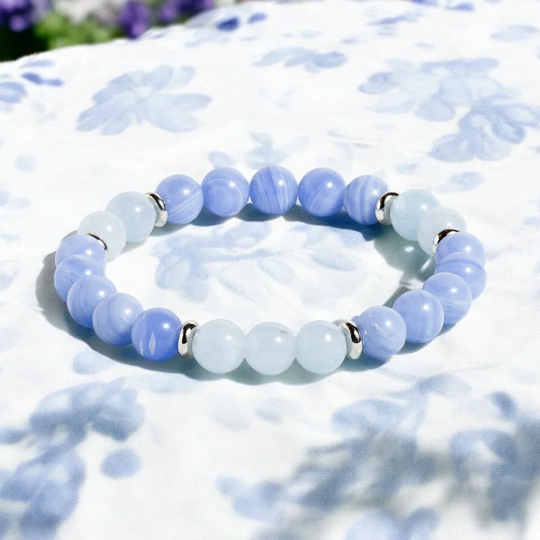 Aquamarine and Amethyst gemstones are often paired together to help sharpen intuition and cleanse bad vibes. Let their soothing colors and natural properties bring you clarity and peace of mind.