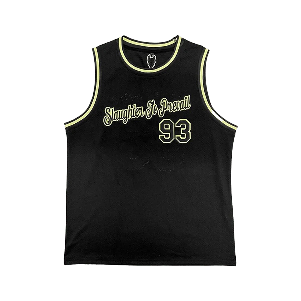 Slaughter To Prevail - Basketball Jersey Please check sizing table. Unleash your inner NBA star with the new basketball jersey from Slaughter To Prevail. This bold basketball jersey features a front embroidery of STP custom logo, complete with back embroidery of Kid Of Darkness mask, "THE TERRRIBLE" and number 93. Made with a soft and comfortable jersey boasts a high-quality and long-lasting embroidery. Model wears size XL and is 183cm/6 ft Product Features: Official Slaughter To Prevail merchandise front embroidery of STP custom logo, complete with back embroidery of Kid Of Darkness mask, "THE TERRRIBLE" and number 93 Premium custom basketball jersey Soft and comfortable High-quality and durable embroidery Order yours today and show the world that you're ready to get some 3 pointers! All Rights Reserved ©First Blood Merchandise