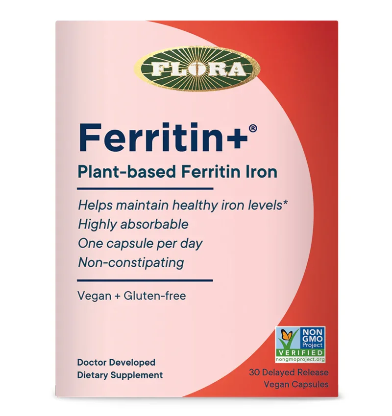 Many healthcare providers recommend taking an iron supplement if you're low on this essential mineral. But form matters. Enter Ferritin+®, a plant-based ferritin-iron extracted from organic peas. Ferritin is a naturally protein-coated form of iron found in legumes that allows for timed release and efficient absorption, which helps to minimize digestive upset. The Easiest Way to Build Iron Easy on your stomach – minimize digestive distress Easy for your body to absorb – unique absorption mechanism efficiently delivers iron right where your body needs it, when it needs it Easy to take – just 1 capsule per day Easy 20 mg of elemental iron per dose Finally, an iron supplement that’s Easy to take everyday How Ferritin+® Works: Ferritin is a highly bioavailable iron supplement. Because this form of iron moves easily through the digestive tract, it doesn’t lead to constipation or the other common side effects of iron supplements. Each ferritin molecule is packed with iron atoms and uses a unique pathway of absorption, unlike any other form of iron . Ferritin iron consists of a protein ‘cage’ that protects the iron through the digestive tract and protects your digestive tract from the iron as well. It’s what allows for a slow release and absorption over time, eliminating the need to add absorption co-factors such as vitamin C, etc. Our clinical studies have shown that plant-based ferritin iron can effectively increase and maintain healthy iron levels.* Support your energy levels and red blood cell production with Ferritin+®.* Helps maintain healthy iron levels* Highly absorbable One capsule per day Non-constipating Vegan + Gluten-free + Non-GMO