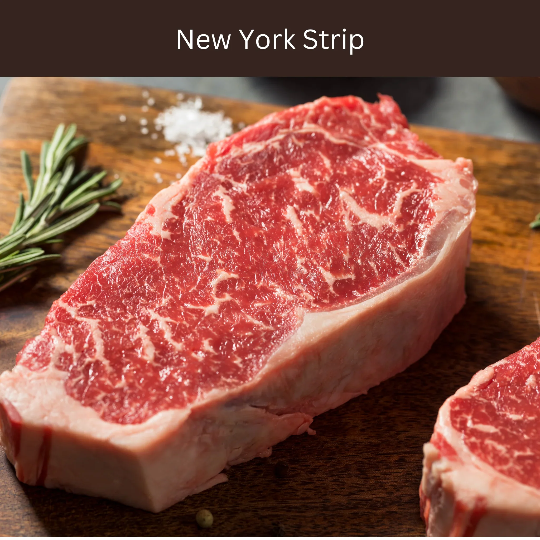 The New York Strip is considered one of the highest quality cuts of steak due to its marbling, tenderness and juicy flavor. This premium steak is grass finished and averages 14oz. Order a single steak, or bundle your favorite PREMIUM steaks together for a 5% savings! Save an additional 5% by selecting a monthly subscription that's conveniently delivered to your door! A minimum of two purchases is required, after that you can cancel at anytime. Recipe Maple Bourbon Glazed New York Strip Steak Ingredients : 2 New York strip steaks (about 10-12 oz each) For the Maple Bourbon Glaze: 1/4 cup maple syrup 2 tablespoons bourbon 2 tablespoons soy sauce 1 tablespoon Dijon mustard 2 cloves garlic, minced 1 teaspoon smoked paprika Salt and black pepper to taste 2 tablespoons olive oil Fresh thyme for garnish Instructions : Prepare the Maple Bourbon Glaze: In a small saucepan over medium heat, combine maple syrup, bourbon, soy sauce, Dijon mustard, minced garlic, smoked paprika, salt, and black pepper. Simmer and stir until the mixture thickens slightly. Remove from heat and set aside. Preheat the Grill or Pan: Preheat your grill or a skillet over medium-high heat. Season and Oil the Steaks: Brush the New York strip steaks with olive oil and season them with salt and black pepper. Grill or Sear the Steaks: Grill or sear the New York strip steaks for about 4-5 minutes on each side for medium-rare, or adjust the time for your preferred doneness. Apply the Glaze: Brush the maple bourbon glaze over the steaks during the last 2 minutes of cooking on each side, allowing it to caramelize. Rest the Steaks: Once done, transfer the New York strip steaks to a cutting board and let them rest for about 5 minutes. Slice and Garnish: Slice the steaks against the grain into desired portions. Drizzle any remaining glaze over the top. Garnish with Fresh Thyme: Sprinkle fresh thyme leaves over the sliced New York strip steaks for a burst of freshness. Serve these succulent steaks with your favorite sides, and savor the rich, sweet, and savory flavors of the maple bourbon glaze. History New York Strip The New York Strip Steak, a beloved cut of beef known for its tenderness and rich flavor, is sourced from the short loin primal of the cow, specifically from the strip loin muscle. Historically, this cut gained prominence in the mid-19th century in New York City, where it became synonymous with upscale dining and culinary excellence. The name "New York Strip Steak" likely originated from its association with New York City, where it first gained popularity among discerning diners seeking premium cuts of beef. Its tender texture and robust flavor made it a favorite choice among steak enthusiasts, both in New York City and beyond. The New York Strip Steak became popular for its versatility and ability to be cooked using various methods, including grilling, broiling, and pan-searing. Its rich marbling and distinctive flavor profile make it well-suited for high-heat cooking techniques, resulting in a deliciously caramelized exterior and juicy, tender interior. Today, the New York Strip Steak remains a staple on menus of steakhouses and restaurants across the United States. Whether served as a classic steakhouse entree or incorporated into innovative dishes, its popularity continues to endure among food enthusiasts seeking a premium dining experience. Its reputation for exceptional flavor and tenderness ensures its continued status as a favorite choice among beef connoisseurs.