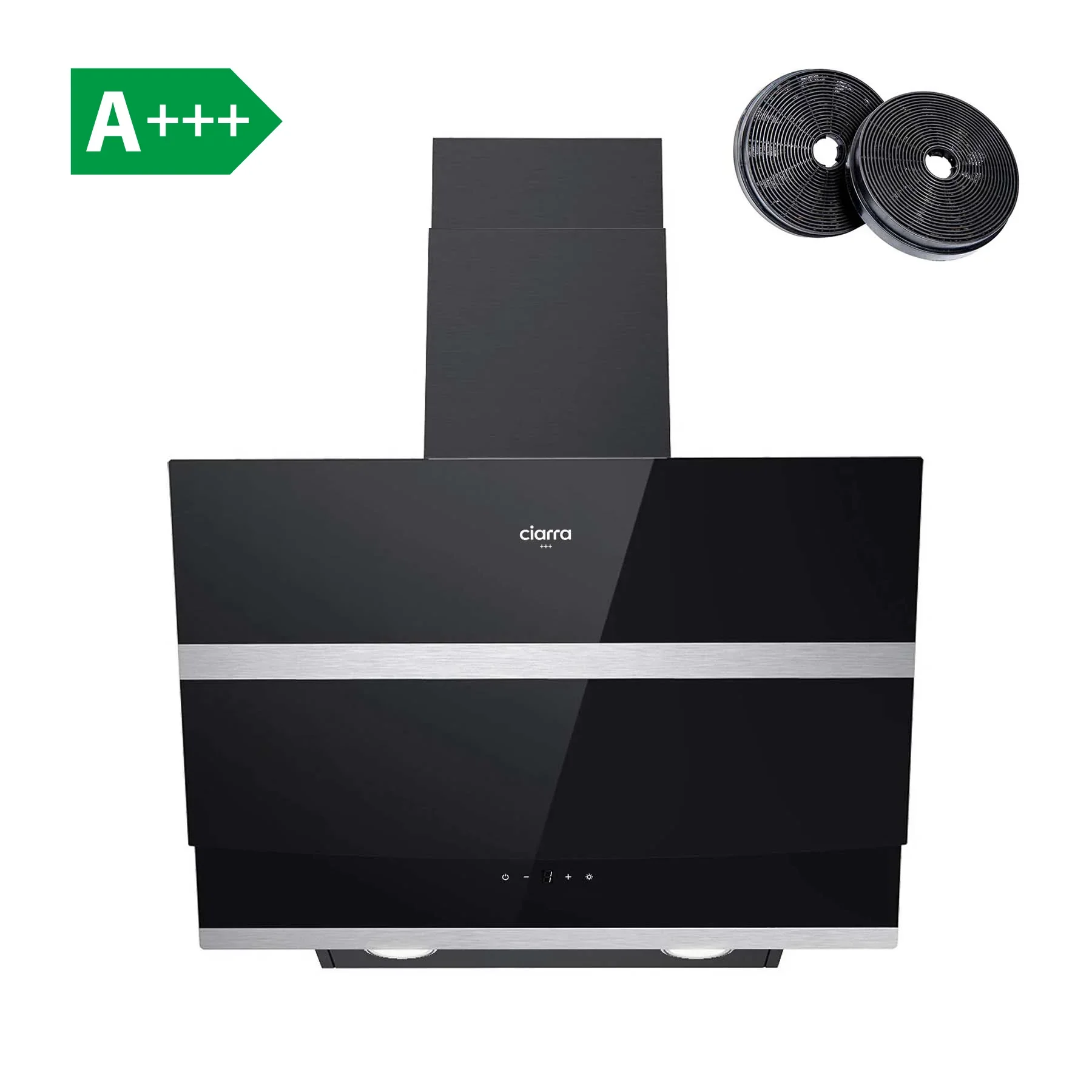 Taux D'Extraction Élevé Pour vous garantir une aspiration parfaite, la hotte dispose de 4 vitesses et un booster jusqu’à un débit d’air 650m³/h, absorbe avec une grande efficace des mauvaises odeurs et nettoie l'air ambiant des particules nocives. Avec Classe d'Efficacité Energétique A++, elle assure un confort de cuisson efficace, économisant de l'énergie et des coûts. 2 Modes de Ventilation Mode de Recyclage : Deux pièces filtres à charbon CBCF003-OW (inclus) sont nécessaires pour recirculer et filtrer l'odeur et la vapeur, particulièrement parfait pour la maison ou l'appartement sans trou de conduit. Mode d'Evacuation : Vous pouvez installer le tuyau d'échappement en aluminium de 1,5 m de long et 150 mm de diamètre pour l'extraction de l'air, qui est inclus dans le kit d'installation. C'est l'option la plus efficace et la plus rapide. Contrôle Tactile La hotte aspirante en acier inoxydable avec panneau de commande tactile noir ne fait pas seulement de votre cuisine une attraction moderne et élégante, elle est également très facile à nettoyer. Choisissez parmi une aspiration élevée, moyenne et faible pour convenir à une variété de méthode de cuisson. Filtre À Graisse En Aluminium La hotte est équipée d'un filtre à graisse amovible en aluminium à 5 couches qui capture efficacement la graisse et l'humidité dans votre zone de cuisson. Avec le filtre à graisse en aluminium, votre hotte aspirante peut maximiser sa puissance d'extraction et éliminer la fumée, la vapeur et la graisse avec une plus grande efficace. Lumières LED À Économie D'Énergie Ces deux lampes LED de 1,5 W éclairent parfaitement votre zone de cuisson et sont également économes en énergie.