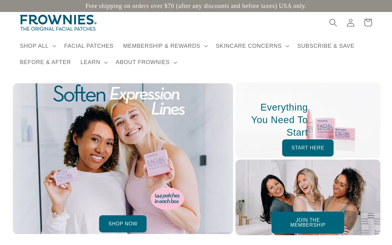 How Do Frownies Work? Facial muscle contractions create dynamic lines on your face when you create facial expressions. Over time, these repeated facial movements can lead to the formation of static wrinkles in the skin, including fine lines and deep wrinkles. Once applied, Frownies Facial Patches harden to act similar to a splint or a cast, to limit expressive facial movements, and soften the appearance of static lines caused by repeated facial expressions. Can Wrinkles be reversed without injections? Frownies Facial Patches act as a splint or cast to limit facial movements and smooth the appearance of static expression lines and existing wrinkles. Like a new exercise routine, the best results come with time. While you may notice results after just one use, lasting results come with consistent wear. We recommend wearing Frownies Facial Patches for 30 nights in a row as you begin your Frownies journey. Of course, individual results will vary, so you may need to wear the facial patches for longer than 30 nights. How to Apply Frownies 1. Separate the facial patches along the perforations to the desired sizes. We recommend using the smallest, individual shapes to contour to your unique facial structure. 2. Wet the shiny side of the facial patches with Frownies Rose Water Hydrator or warm water to activate the starch-based adhesive. Set the facial patches aside until they become tacky and begin to curl slightly, for up to 90 seconds. 3. Gently massage the intended area of the skin for approximately 10 seconds to increase circulation and blood flow. 4. With one hand, separate any creases in the skin while applying the facial patches with the other hand. For best results, overlap the facial patches and cover the entire forehead. 5. Wear Frownies Facial Patches overnight, or for at least three hours, to relax facial tension and retrain facial muscles. 6. To remove, soak the patches with a wet washcloth or by splashing your face with plenty of warm water. Gently slide your fingers underneath the patches to remove. Alternatively, you can remove them during your morning shower or even sweat them off during your workout! Love Your Results Our skincare products are cruelty-free and never tested on animals. All Frownies Patches, including our forehead patches, are HRIPT third-party dermatologist tested and are clinically proven to be non-irritating, non-comedogenic, and safe for sensitive skin. Unlike injectables, our facial patches do not prevent dynamic facial movement allowing you to continue to make natural facial expressions. Join the Frownies Family! Once you achieve the results you’re looking for, you may decrease the frequency that you wear our facial patches. However, as you make facial expressions throughout the day, you may notice fine lines returning – This is the time to apply Frownies again to maintain your results. Some of our users continue to wear the facial patches every night, while others can wear them less often. Want accountability in your new skincare routine? Join our 60-Day Confident in Your Skin Challenge hosted in our private Facebook community . Enhance Your Results with Frownies Skincare For added effectiveness, our facial patches are best when applied with Frownies Rose Water Hydrator Spray. The organic rose hydrosol contains hyaluronic acid to provide an intense, quick boost of hydration and additional skin-smoothing benefits for all skin types including sensitive, oily, and dry skin. Rose Water Hydrator is a game-changer to get the best results with our wrinkle patches. The Perfect Addition to Your Skincare Routine! The entire line of Frownies plant-based skincare products was formulated to work seamlessly with our wrinkle patches. So, go all in on your Frownies skincare journey with our Complete Skincare Set . Our forehead patches can be applied over most serums and moisturizers, just be sure to allow enough time for other skincare products to fully absorb before applying the facial patches. Patches for All Areas of the Face We understand that healthy, glowing skin is not confined to just one area of your face. That's why our holistic approach to skincare extends beyond forehead wrinkles to target other areas affected by expression lines. Our Corner of Eyes & Mouth Wrinkle Patches are designed to address crow's feet and smile lines. Our Gentle Lifts are shaped to fit smaller areas affected by fine lines and wrinkles, including lip lines, frown lines, smile lines, and marionette lines. Shop All Frownies Patches Age In A Way That Makes You Happy! As a fifth-generation, female-founded family business , our goal is to support your unique skincare goals. We offer an affordable, customizable, and non-invasive treatment option for those seeking to soften and smooth forehead lines and other expression lines on the face. Our wrinkle patches can be used as an alternative to – or in combination with – injectables. The choice is up to you! User consistency will improve the results -but the results are worth it! If you ever have questions about a product or need an application tip, please email us at [email protected] or message us on social media for a quick response!