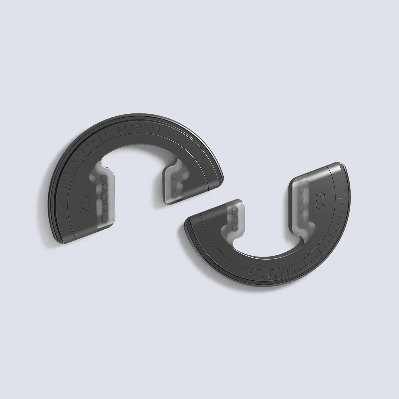 Phones and cases change, but your Pocket Tripod PRO doesn’t have to. Easily replace your tripod’s Adapters with new ones that have the same opening size as your new device. Adapters are the components that grip on to your device. With a total of 14 size to fit virtually every phone and case on the market, you only need to swap the Adapters to keep your tripod future-proof . Also buying a Universal Kit? Buying a Universal Kit? Every Pocket Tripod PRO Universal Kit box includes 9 pairs of adapters that cover all phones (iPhone and Android) and 95% of cases. If you purchased a Universal Kit and need Adapters in any of the 7 uncommon sizes not already included. Sizes: 6.0 MM to 7.5 MM and 8.5 MM you can contact us to get the right size as per our Right-Size Guarantee . Additional pairs can be purchased for only $5 USD per set. Email WHAT SIZE DO I NEED? When you bought a Pocket Tripod PRO, the package would have included a Fit Card. Use the openings on the edge of the Fit Card to find the best fit for your phone and case. How To Measure PACKAGE CONTENTS 1x PAIR OF ADAPTERS For Pocket Tripod PRO Choice of size selected above