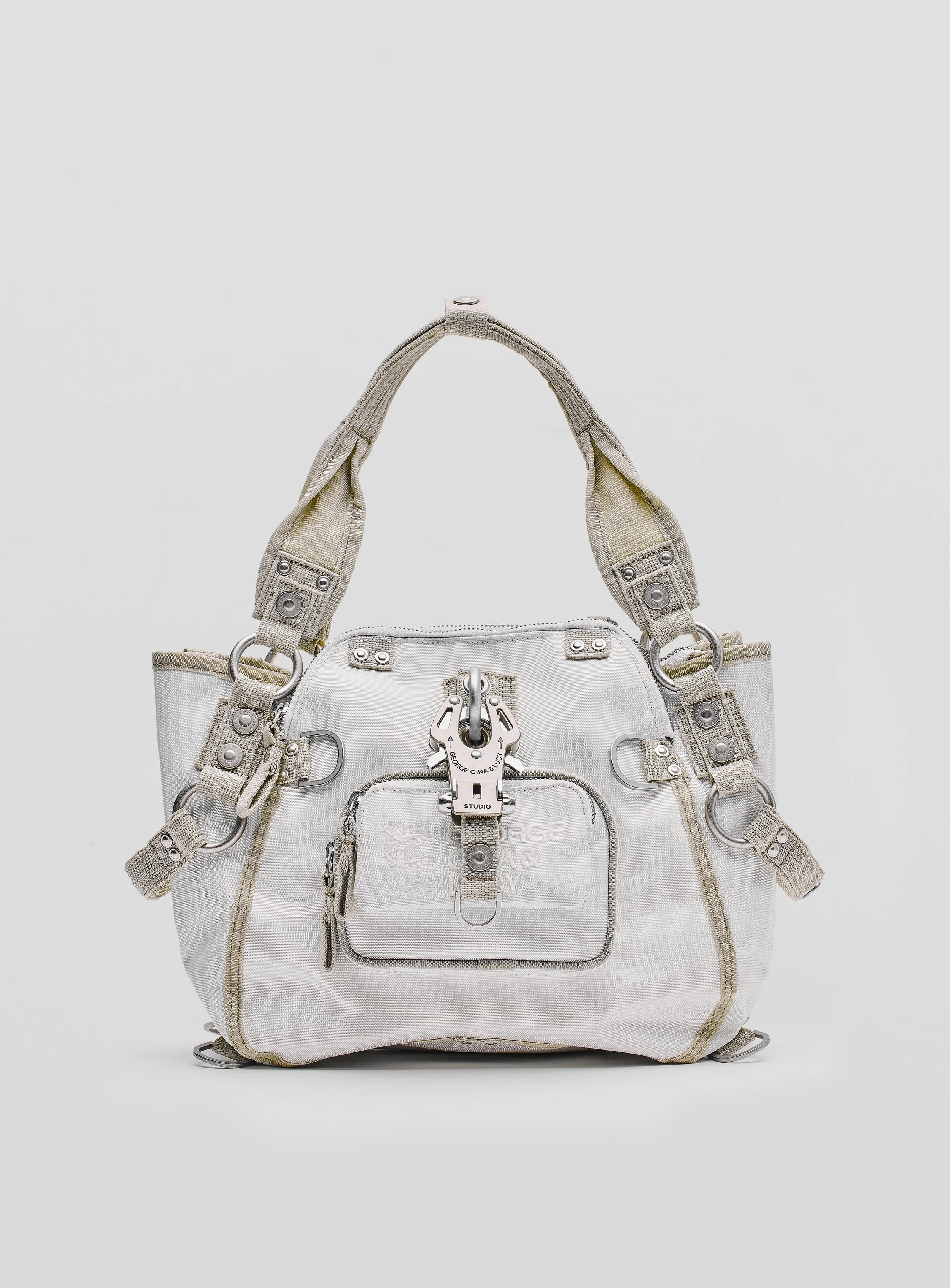 Handtasche aus GG&L Nylon mit farblich abgestimmtem, gesticktem Logo & neu designten GG&L Stahlschloss. Die Symbolessa hat kleine Taschen um die Tasche verteilt und ist mit Hardwaredetails versehen. Kommt mit größenverstellbaren & abnehmbaren Schulterriemen. Hauptfach mit Reißverschluss Mehrere Taschen mit Reißverschlüssen Reißverschlussfach innen mit GG&L Zip Puller Insgesamt 9 Taschen GG&L Stahlschloss Inklusive Dust Bag mit Kordelzug Maße: 27 cm x 40 cm x 18 cm / 10.6 in x 15.7 in x 7.1 in Gewicht: 1,33 kg / 2,93 ibs Schulterhenkel: 18 cm / 7.1 in Schulterriemen: 39-73 cm / 15.4-28.7 in *Bitte beziehen Sie sich auf die Produktbilder zur Farbreferenz.