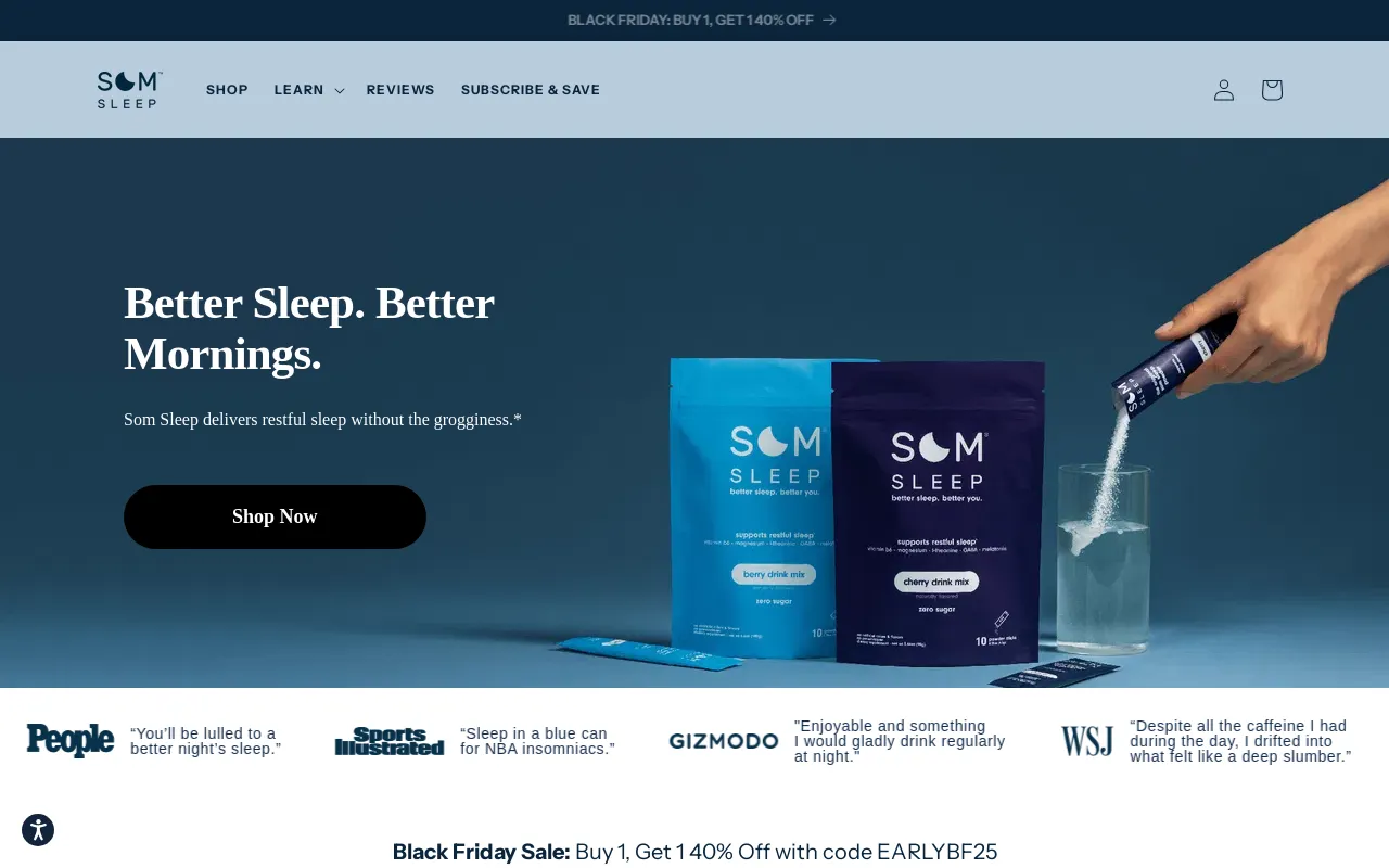 Experience the Power of Som Sleep! Say goodbye to restless nights and hello to a refreshed morning. Join tens of thousands of satisfied customers who are already sleeping better. Try it now!