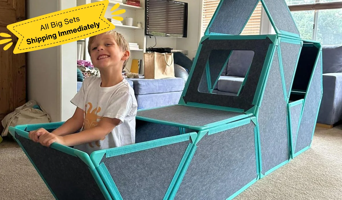 Shop giant magnetic tiles for kids in the UK! Life-sized magnetic building panels kids can actually crawl inside. Build forts, castles, rockets & more. Made from sustainable eco-felt panels with safe & powerful magnets. Free shipping. Designed for kids ages 3-10+.