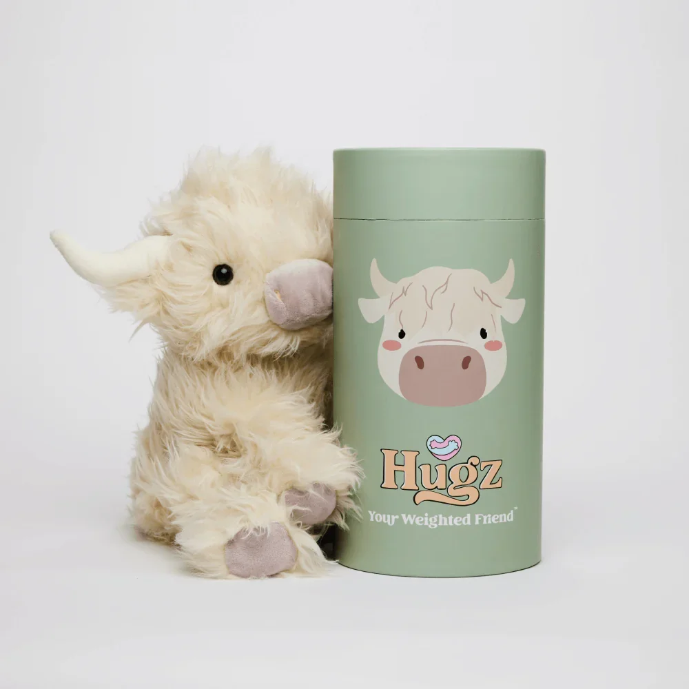 Snuggle up with Scottie the Highland Cow! With her soft, shaggy fur and comforting weight, Scottie will help moo-ve away stress and bring calm to any day. When life feels a little frazzled, Scottie will keep you grounded and cozy. She’s perfect for a soothing hug, always ready to lend a hoof and provide the ultimate cuddle experience!