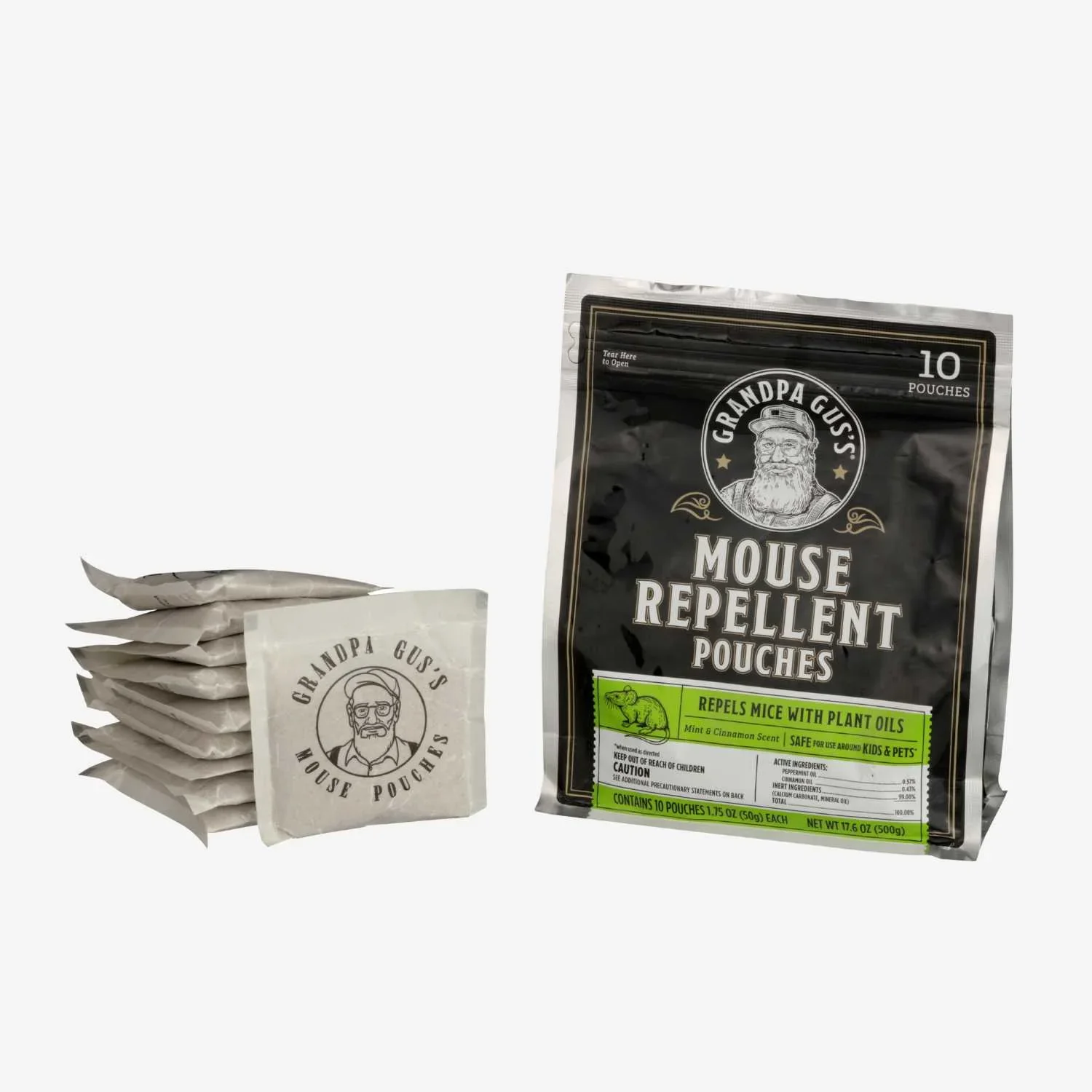 REPEL MICE NATURALLY. Stop mice from invading your home, garage, car, truck or RV through peppermint and cinnamon time-release scent. A hassle-free pest control barrier for any home. EFFECTIVE. All-natural formula with ingredients from essential oils. Keeps mice out and keeps your home and cab fresh. EASY TO USE. Simply open the resealable bag, place in areas out of wind & air flow and away from bait and go. No mess, no traps to check, no dead rodents to clean or get rid of. AIR FRESHENER. Leaves vehicles, closets and cabinets smelling minty fresh. No stinky repellent chemicals in your home, just essential oil freshness. * Packaging and weight of pouches may vary.