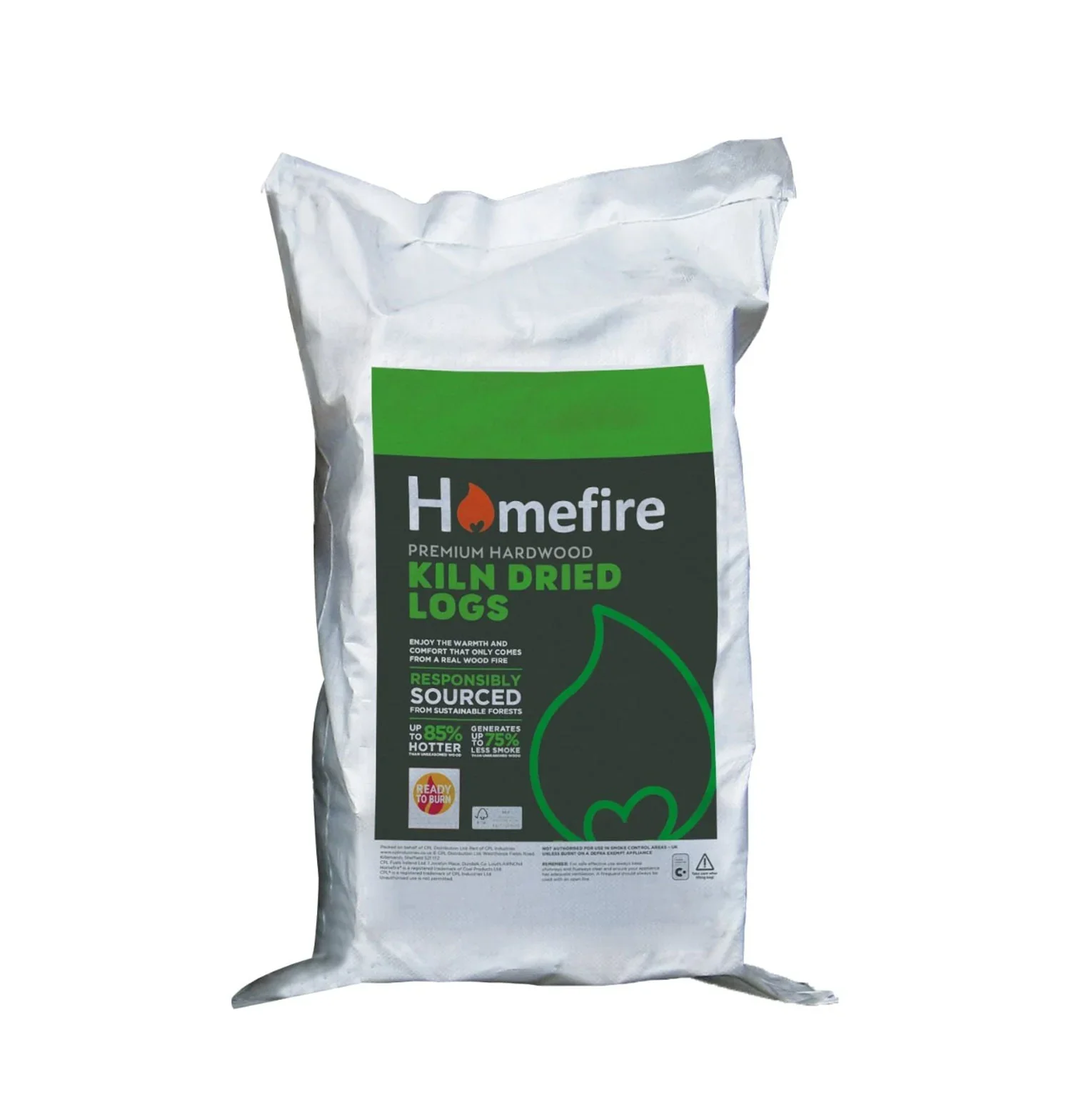 Our highest quality and best-performing firewood, Homefire kiln-dried hardwood logs, give fantastic results every time. Homefire Kiln-dried Hardwood Logs Grab Bags of kiln-dried logs delivered straight into your log store When it comes to wood fuel, Homefire Kiln Dried Logs are the finest that money can buy. Extremely dry, with a Ready to Burn-certified moisture content of less than 20%, Kiln Dried Logs burn hotter and for longer than any other type of log fuel. What’s more, these 16.5 litre bags are big enough to provide great value for money, but still small enough to be delivered straight to your log store. These powerful Kiln Dried Logs meet strict quality control guidelines that control the moisture content, size, package volume, species and country of origin. Kiln Dried Logs are a premium fuel and provide an unbeatable, authentic log fire with a heat and aroma that is unique to this type of fuel. Kiln-dried to less than 20% moisture content Ready to Burn Burn at a high temperature with a long and natural flame Low smoke emissions make them better for the environment Low in tar so better for your appliance Ideal for wood burning stoves, multi-fuel stoves, pizza ovens, chimeneas or traditional open fires Can be burnt in smokeless zones on a DEFRA Exempt appliance