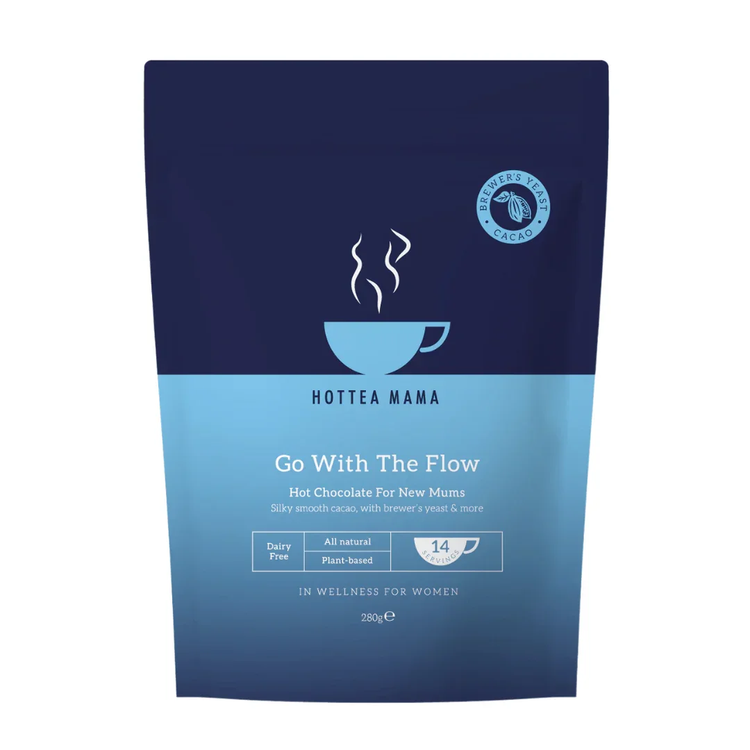 Go With The Flow Hot Chocolate, is specially blended with new mamas in mind, using natural ingredients traditionally used to support breastfeeding and lactation. Including 41% Ghanaian cacao, a great source of slow release energy and nutrient rich calories Brewer's yeast*, used to support breastfeeding mums, rich in B vitamins, protein, iron, selenium, and chromium Coconut milk powder to boost electrolyte recovery, and hydration Coconut sugar (not cane sugar) which contains a small amount of inulin, a type of soluble fibre that can make blood sugar spikes less likely Designed to be enjoyed both hot and cold We recommend using oat milk, also a natural galactagogue that can potentially support milk supply 100% natural ingredients, no artificial sweeteners or flavourings Winner of an Excellence Award at the Nourish Awards 2025 10 x 20g servings per pouch Allergen Information: Go With The Flow contains gluten . It is not suitable for individuals with coeliac disease or gluten intolerance.